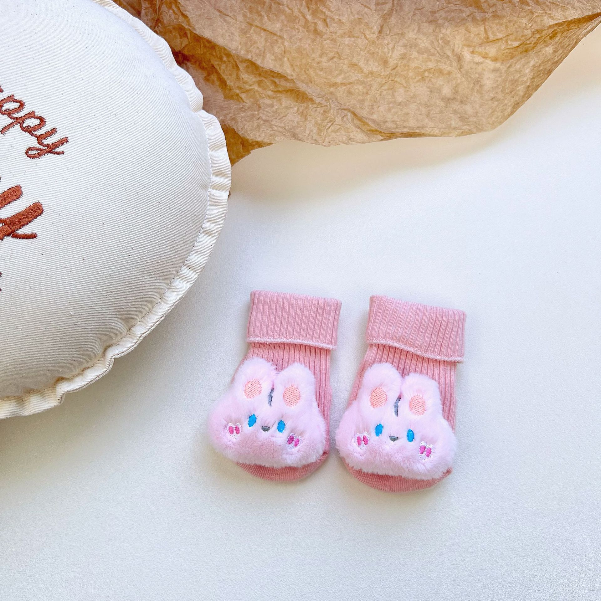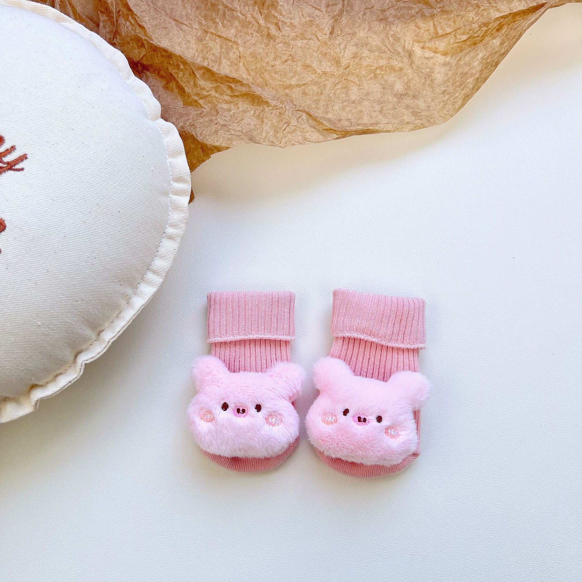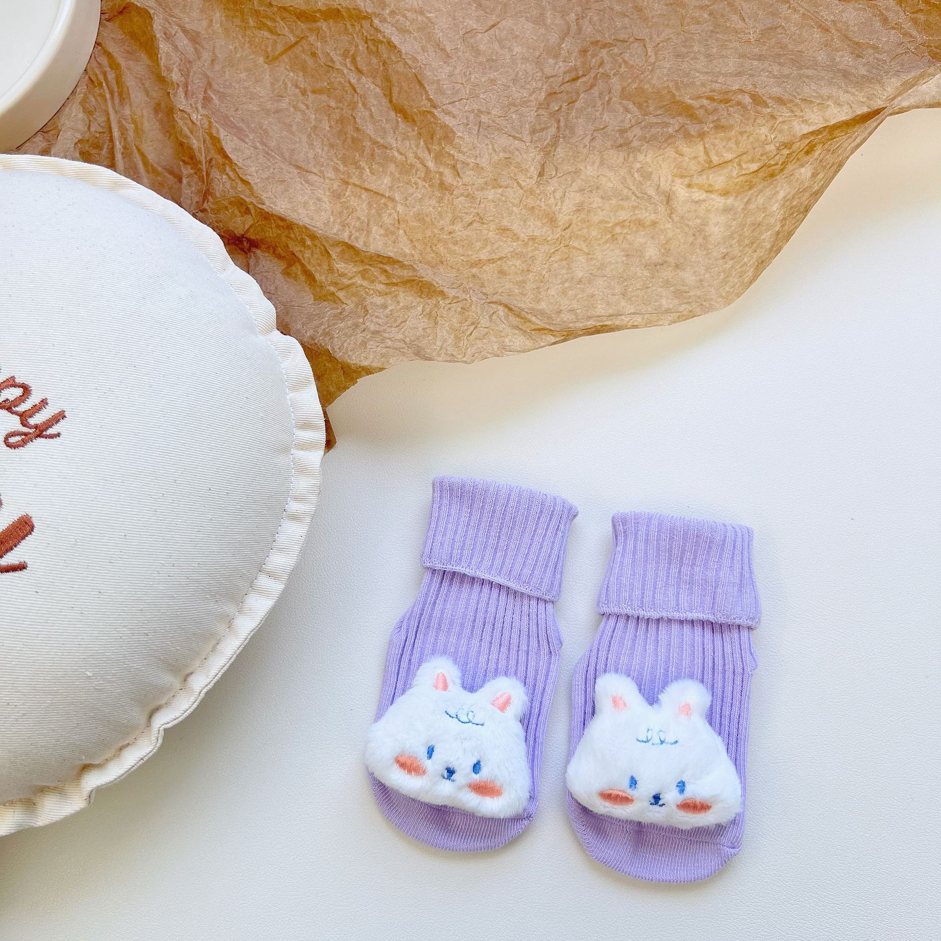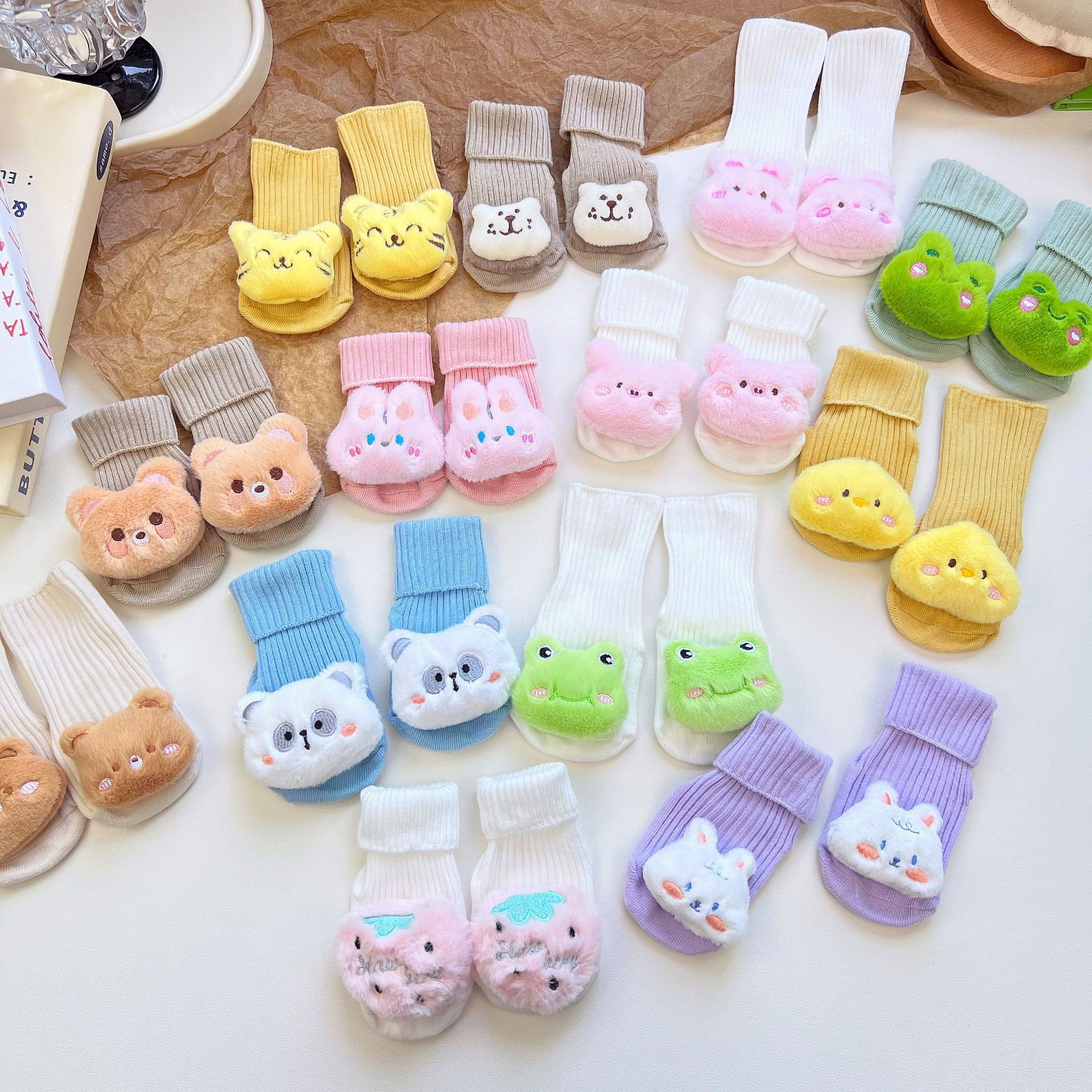이중 바늘 인형 중간 튜브면 양말 사계절 입체 만화 인형 아기 양말 유아 바닥 양말 제조 업체 도매스토어 가기
