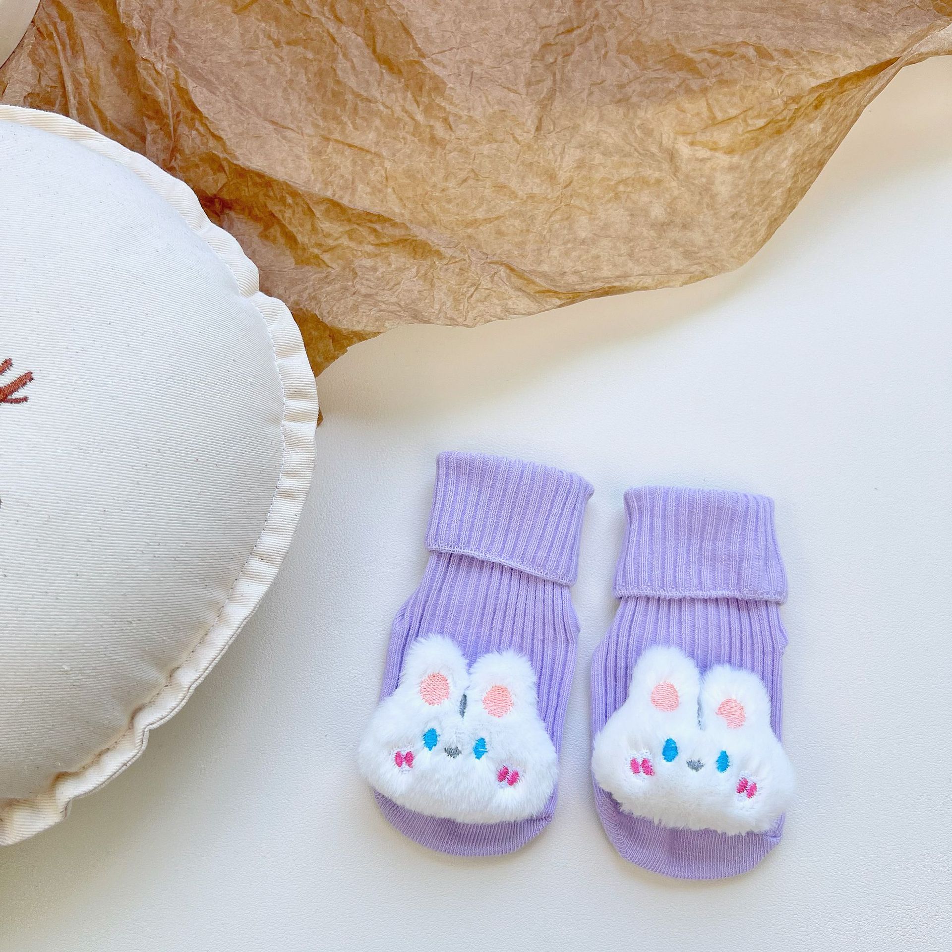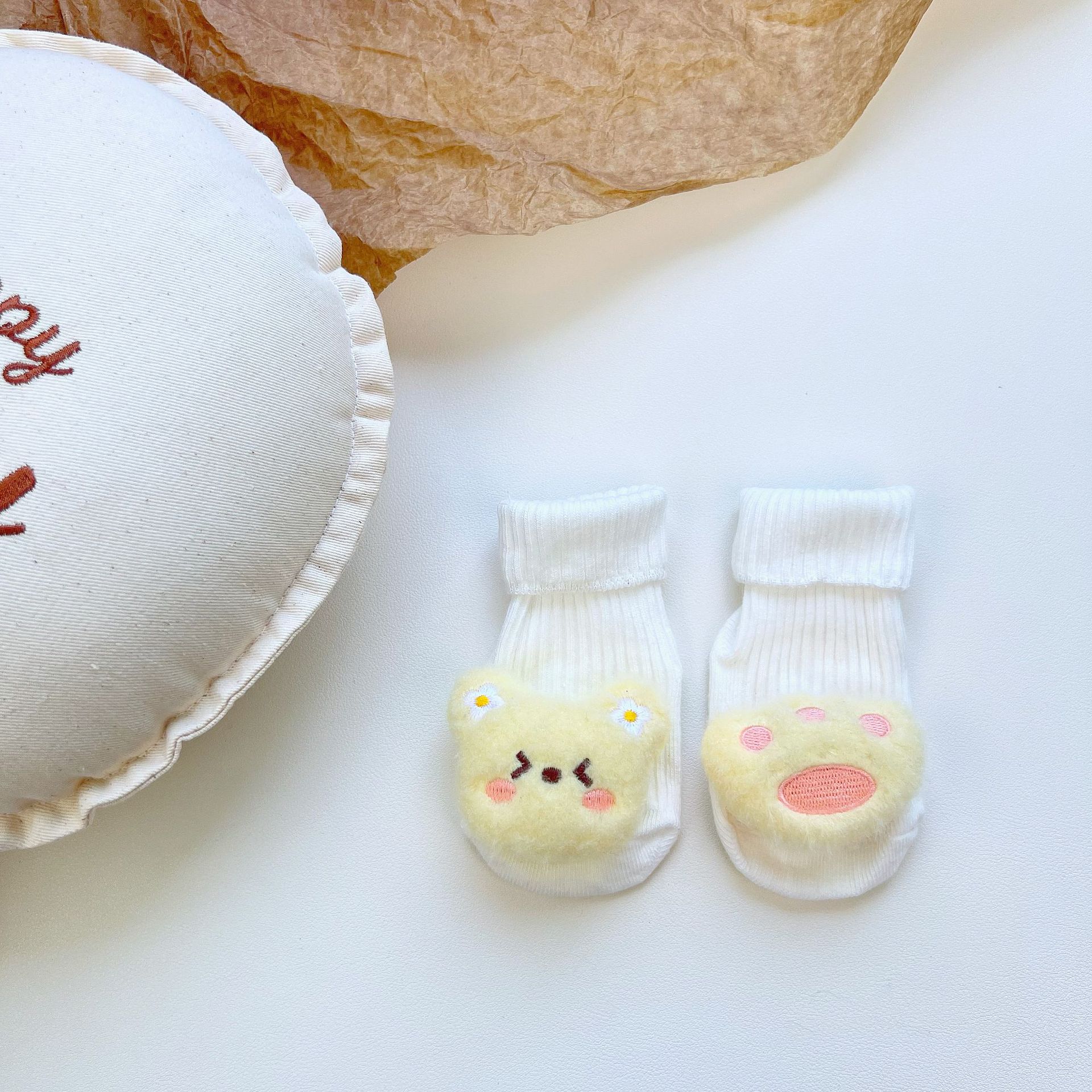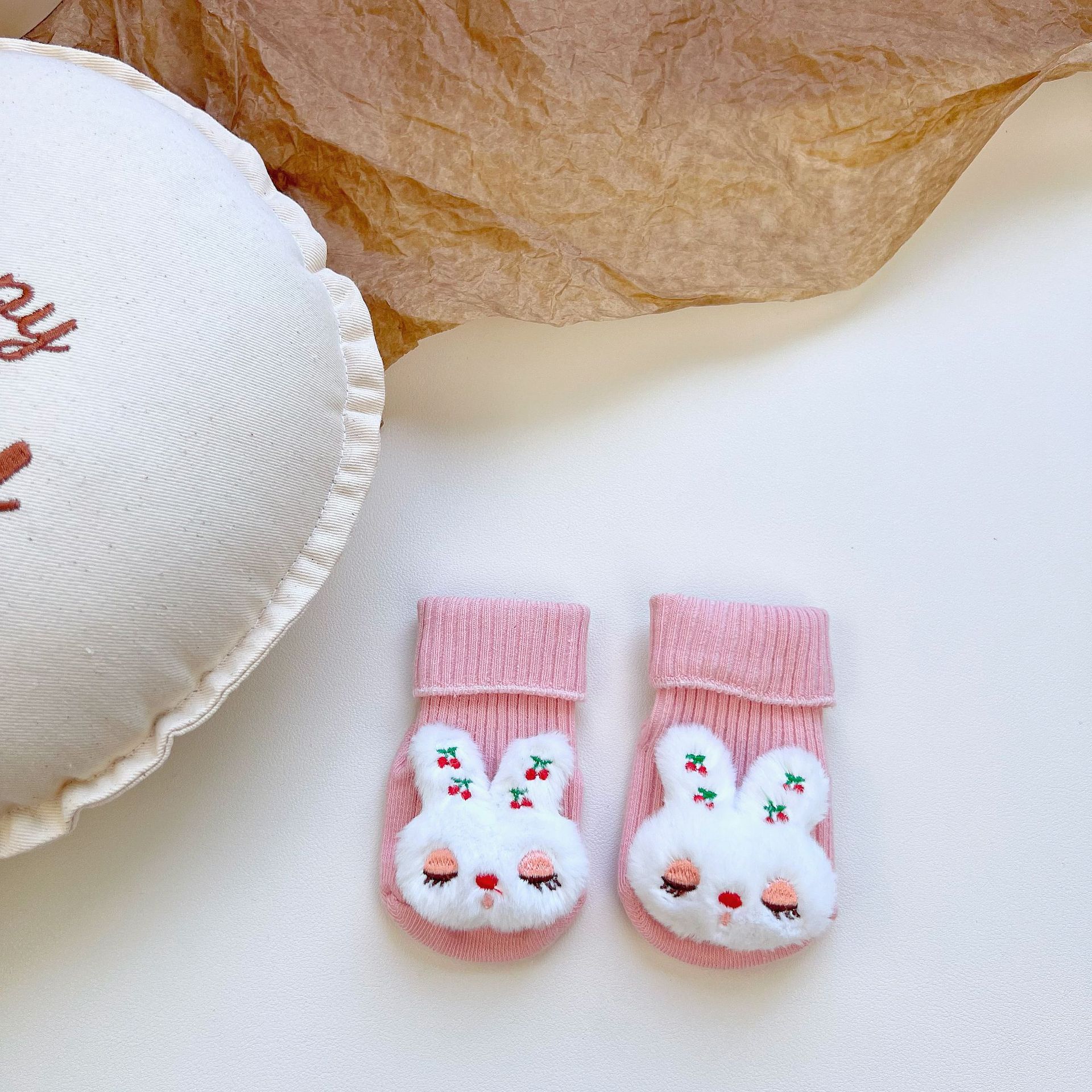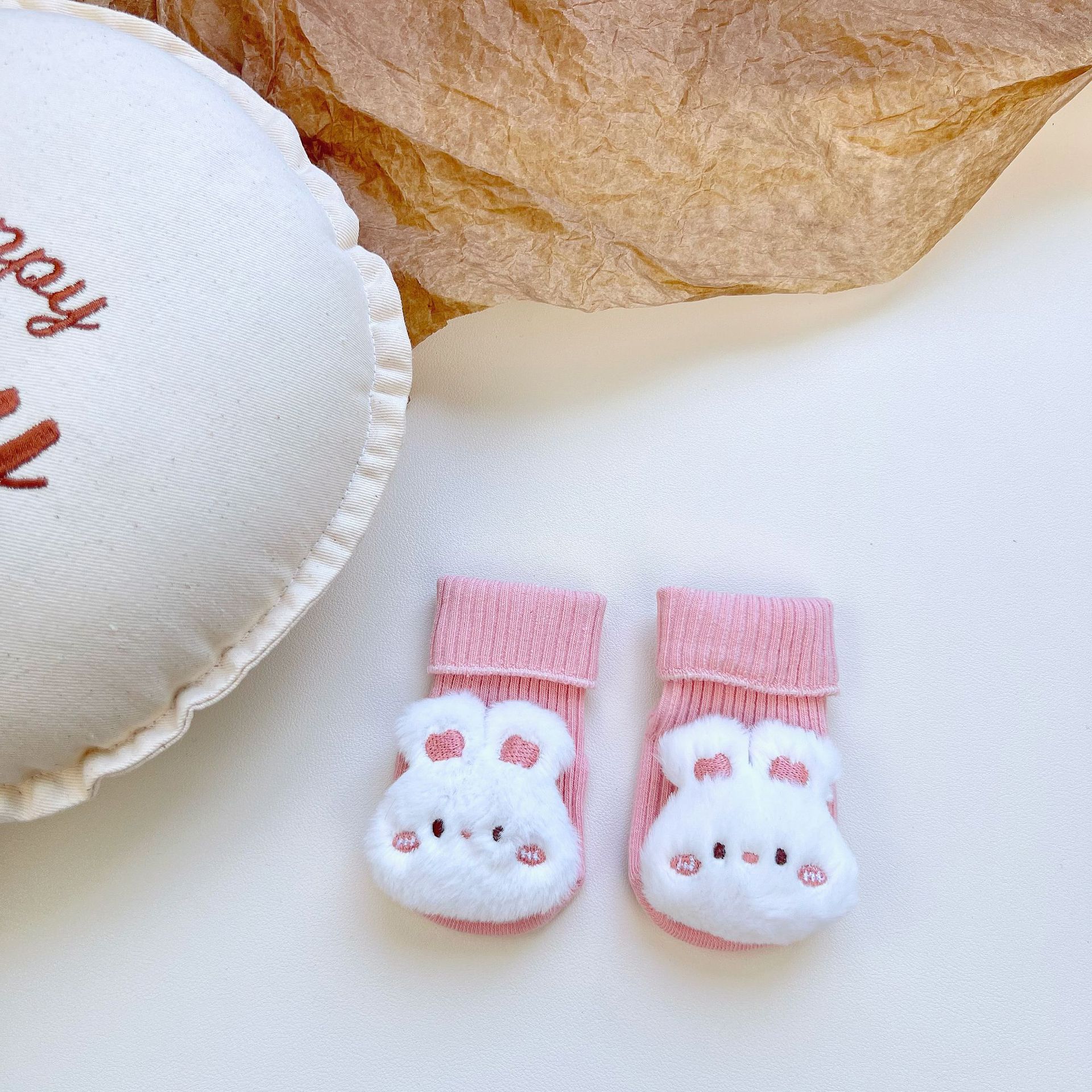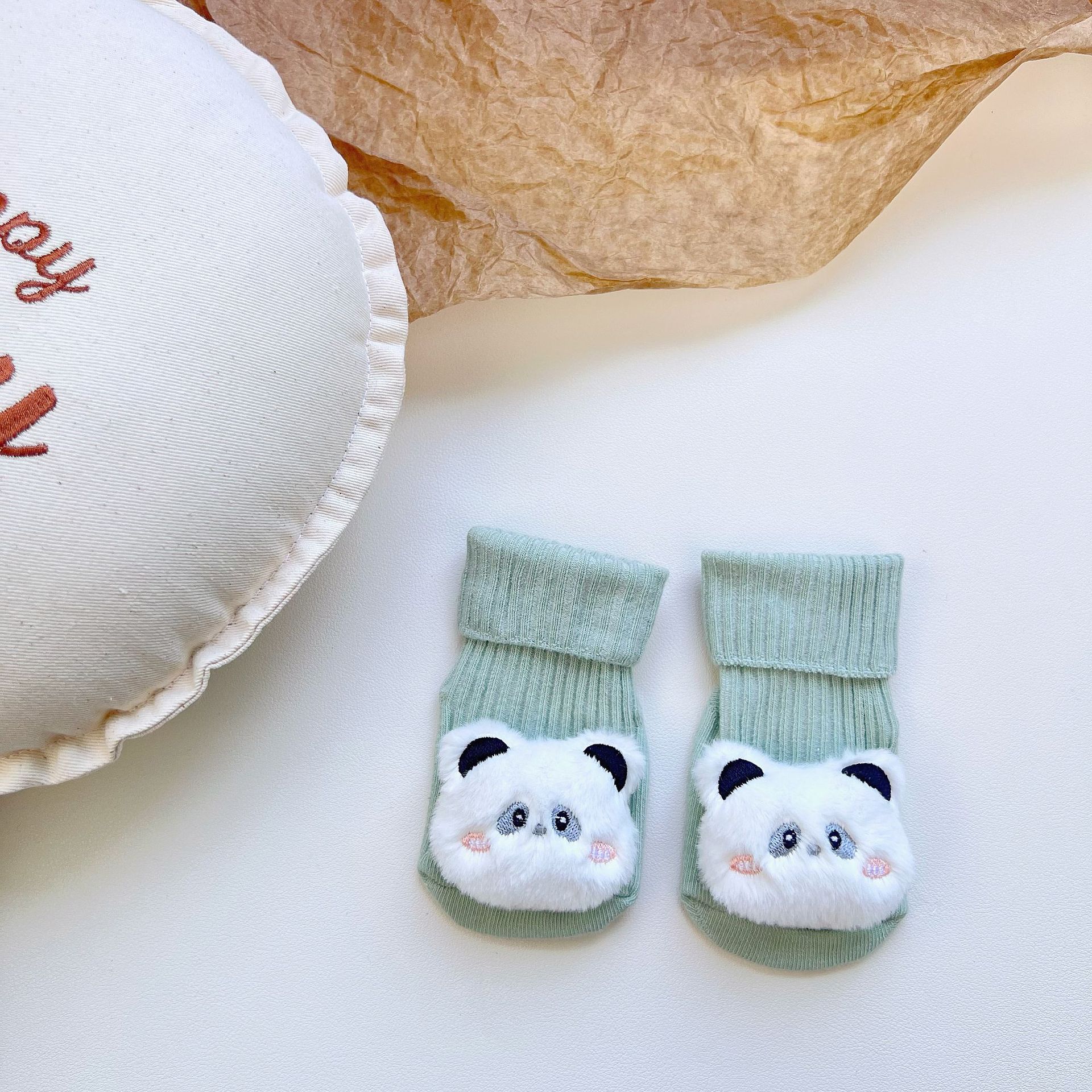 이중 바늘 인형 중간 튜브면 양말 사계절 입체 만화 인형 아기 양말 유아 바닥 양말 제조 업체 도매스토어 가기