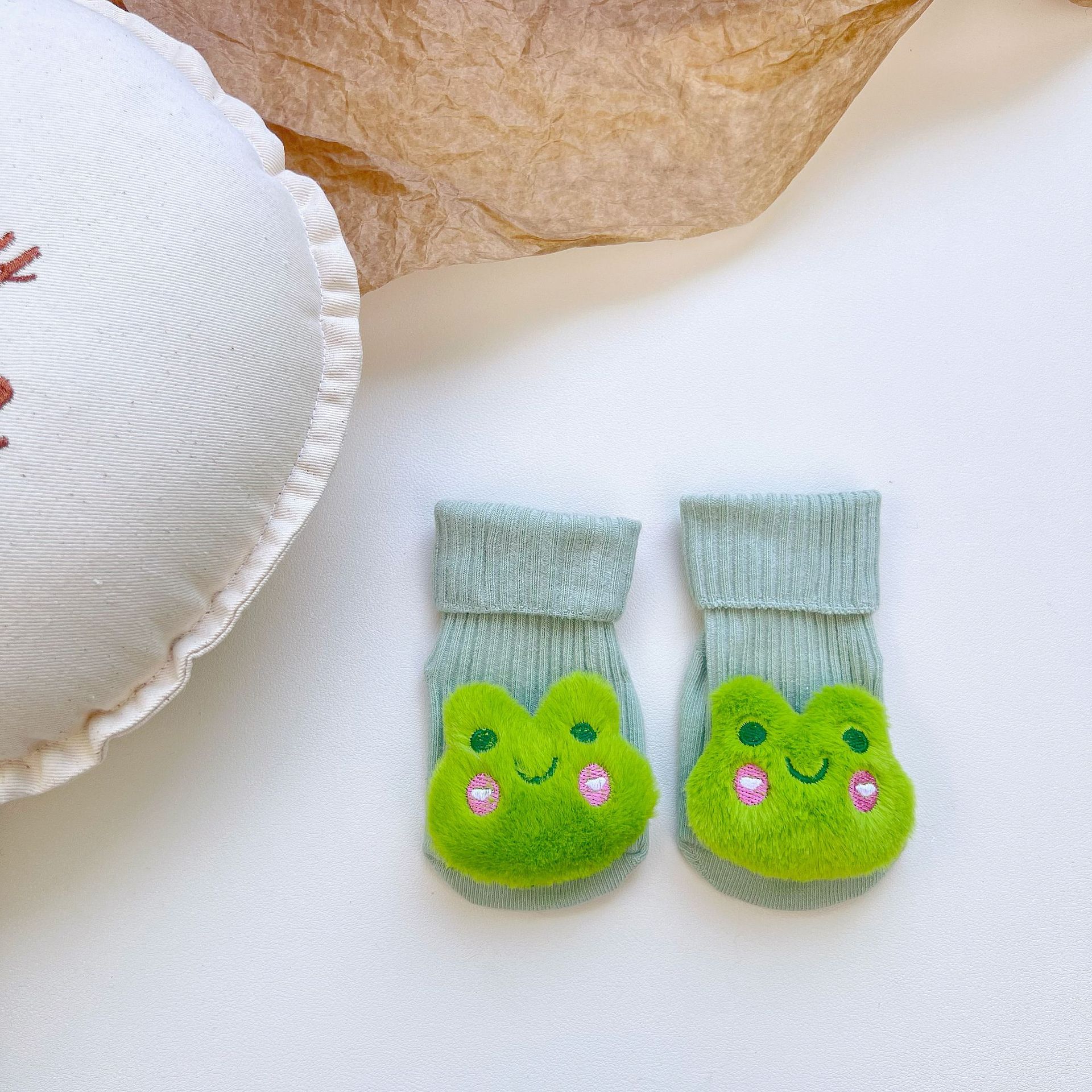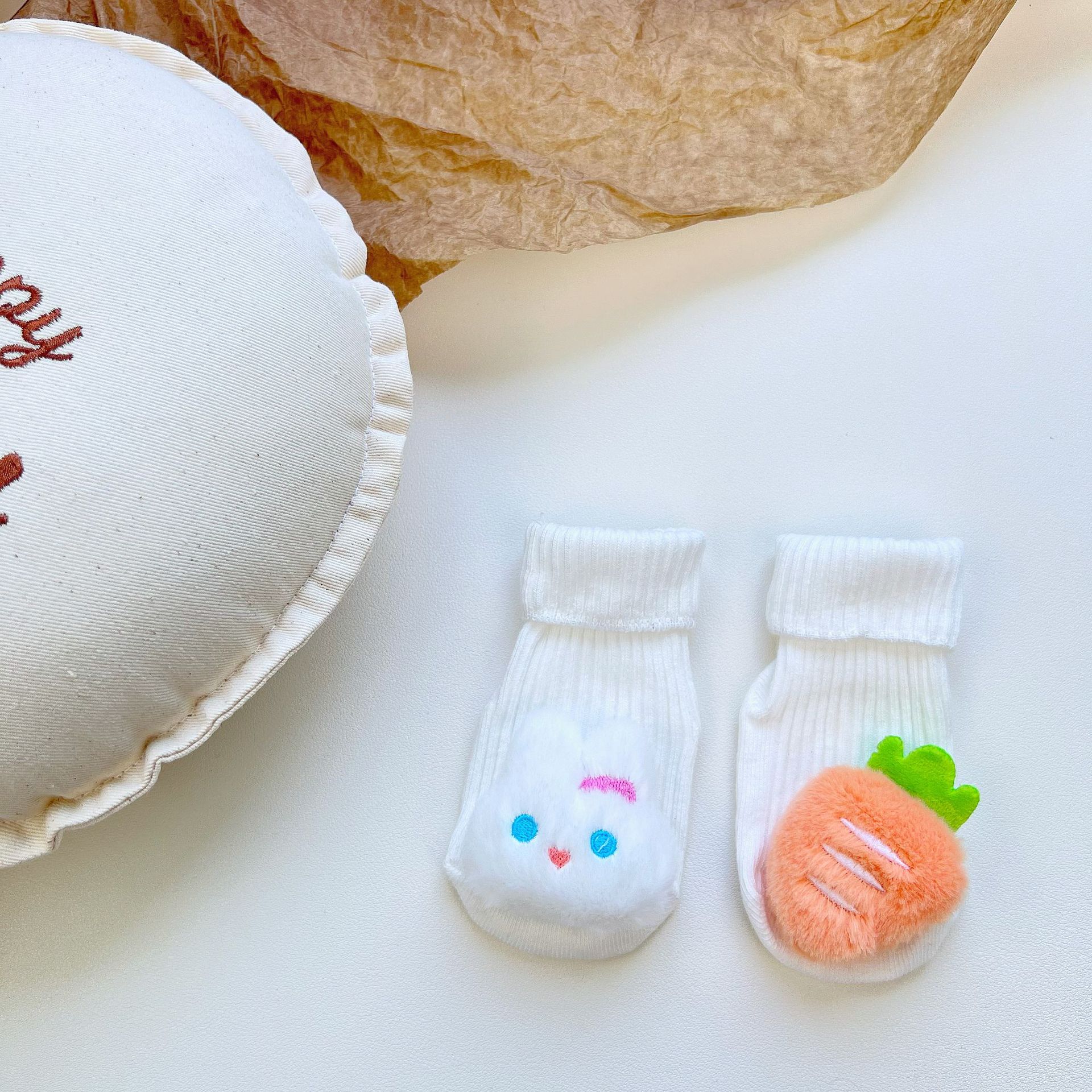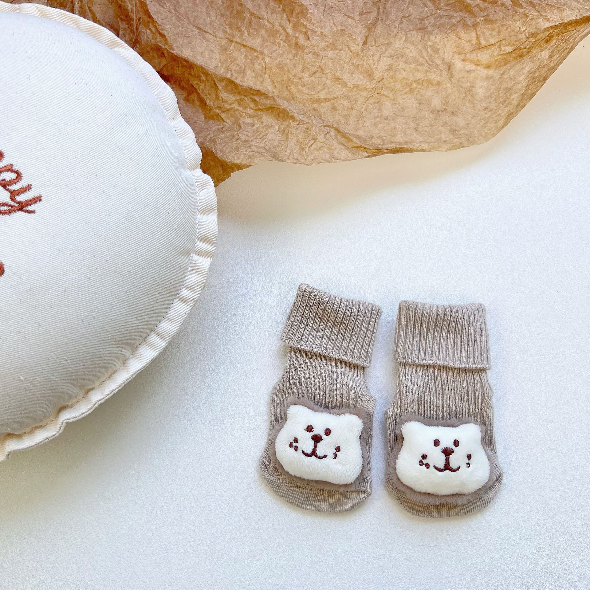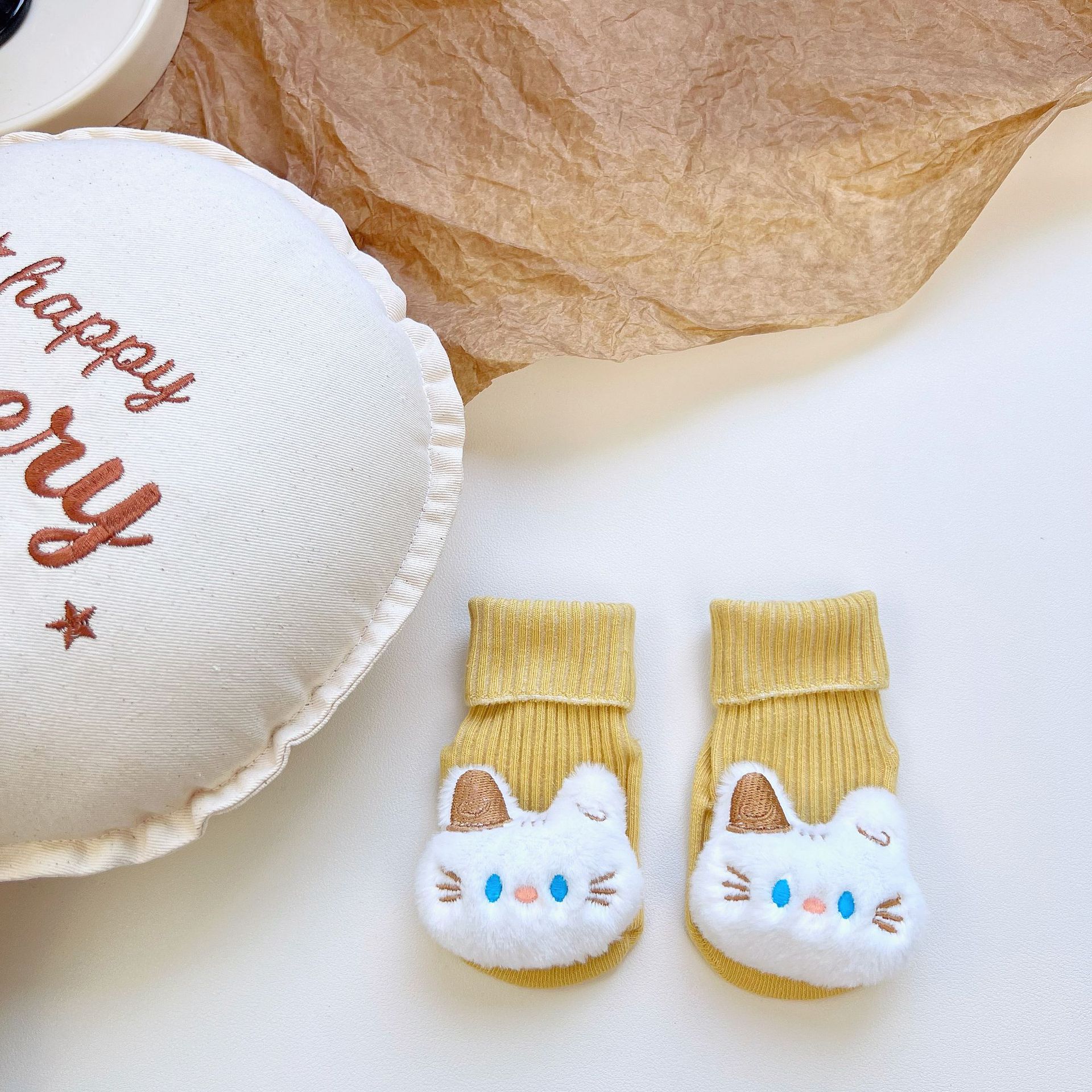 이중 바늘 인형 중간 튜브면 양말 사계절 입체 만화 인형 아기 양말 유아 바닥 양말 제조 업체 도매스토어 가기
