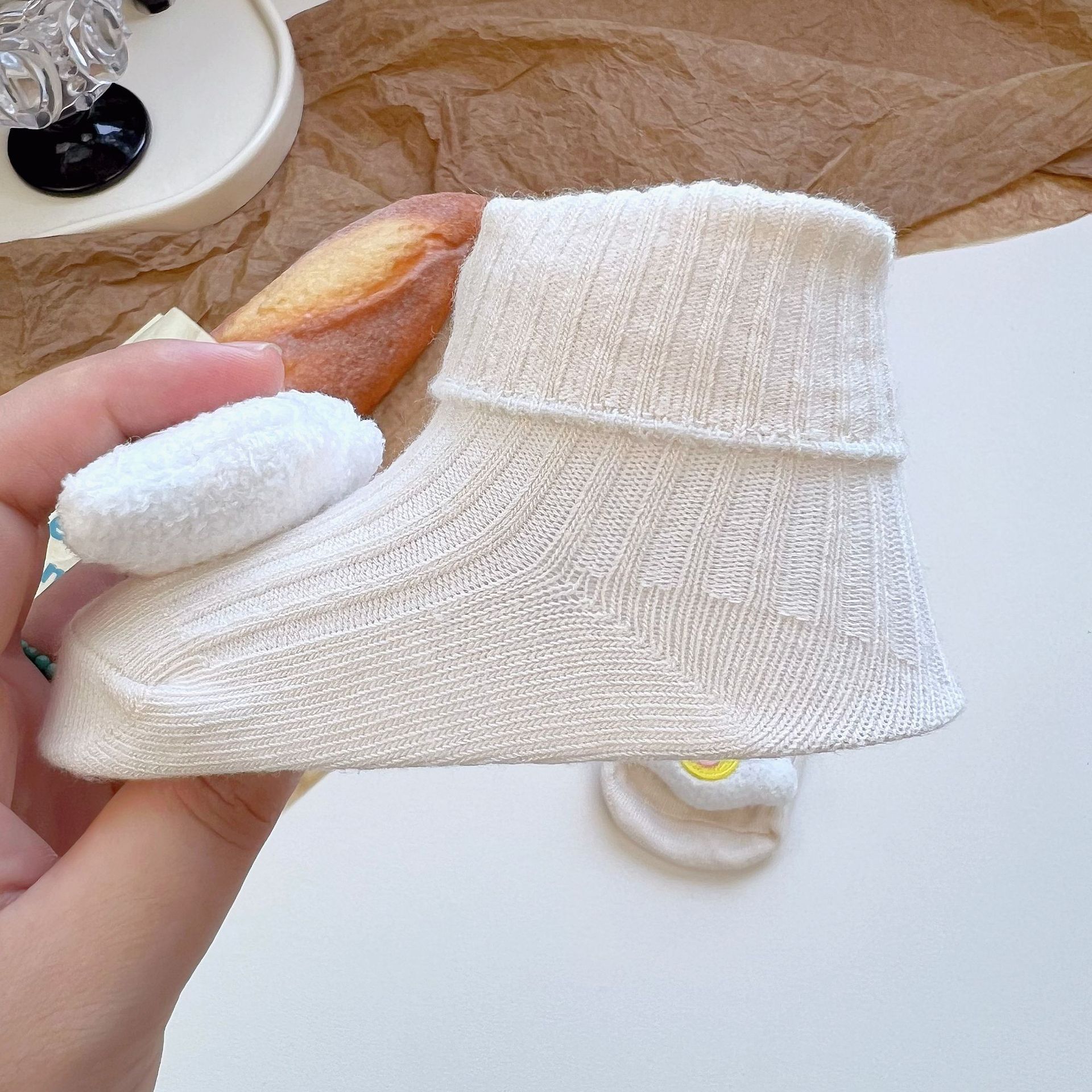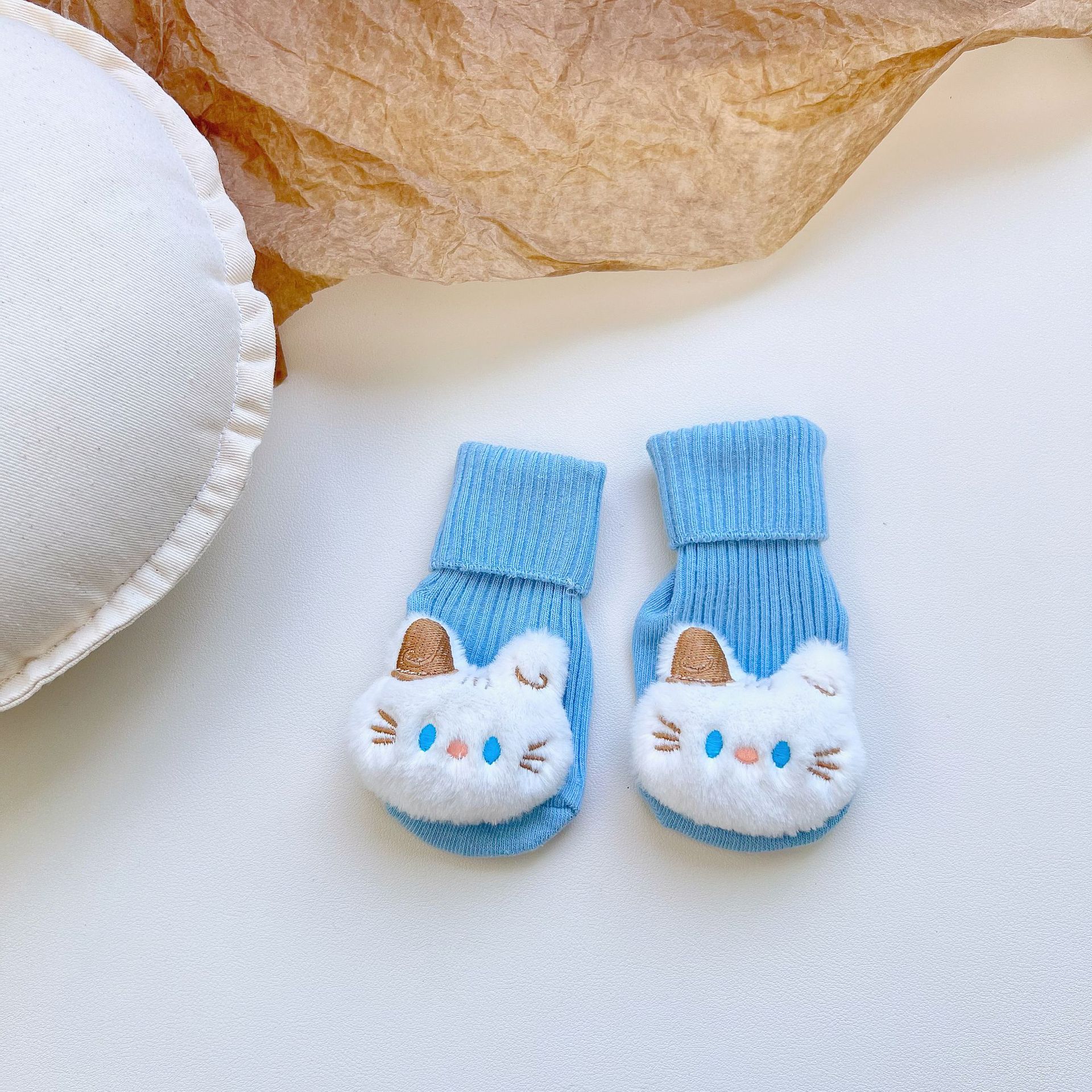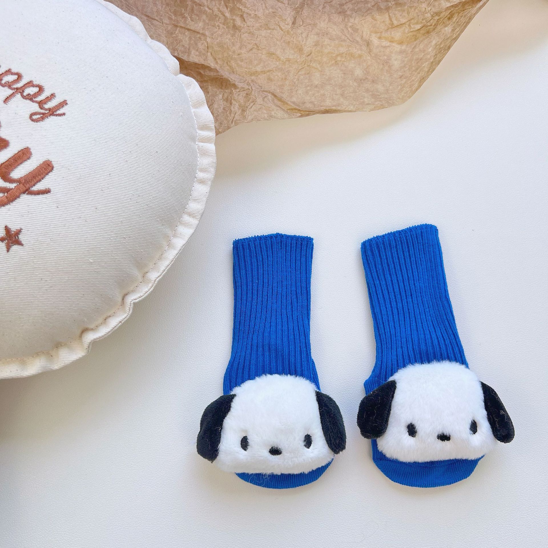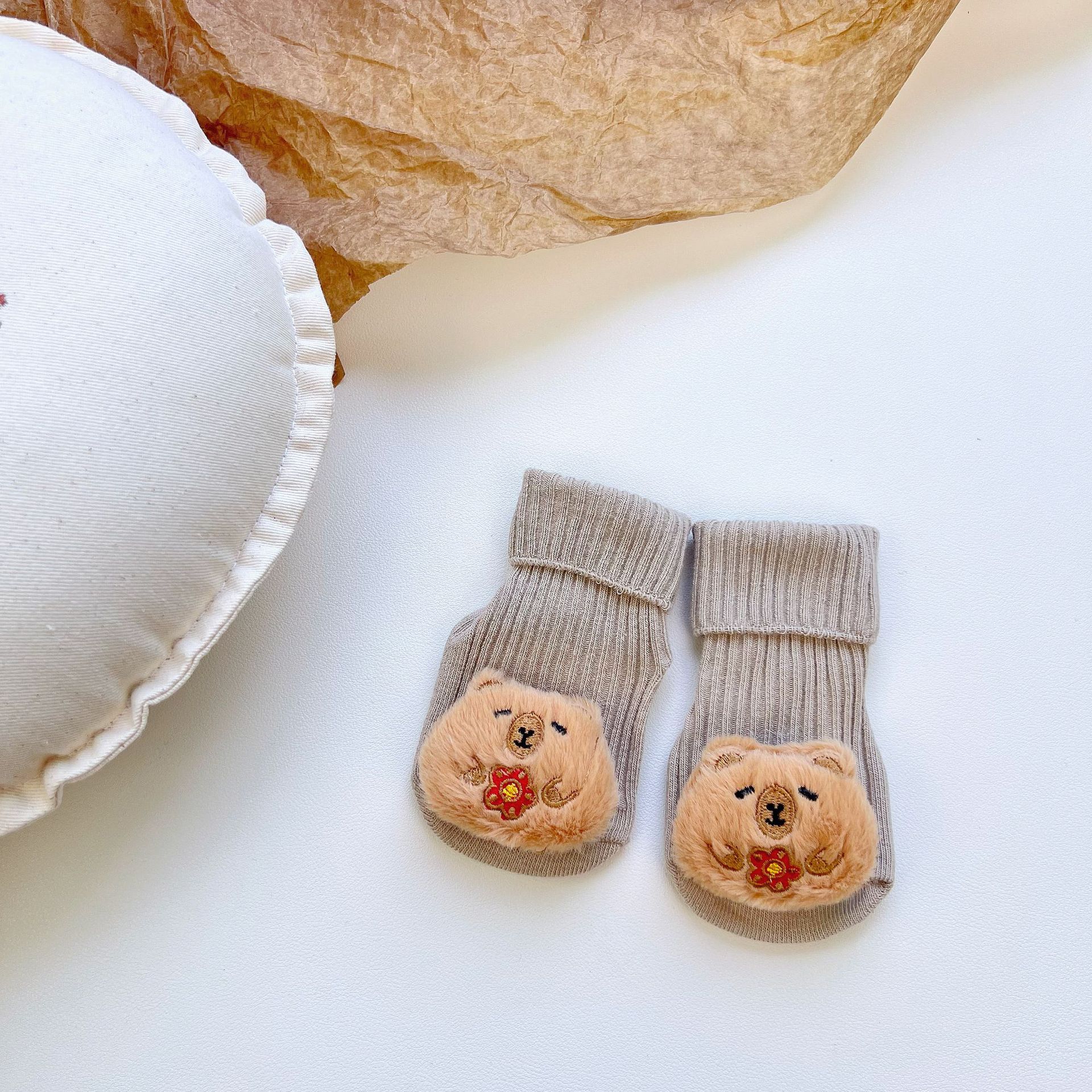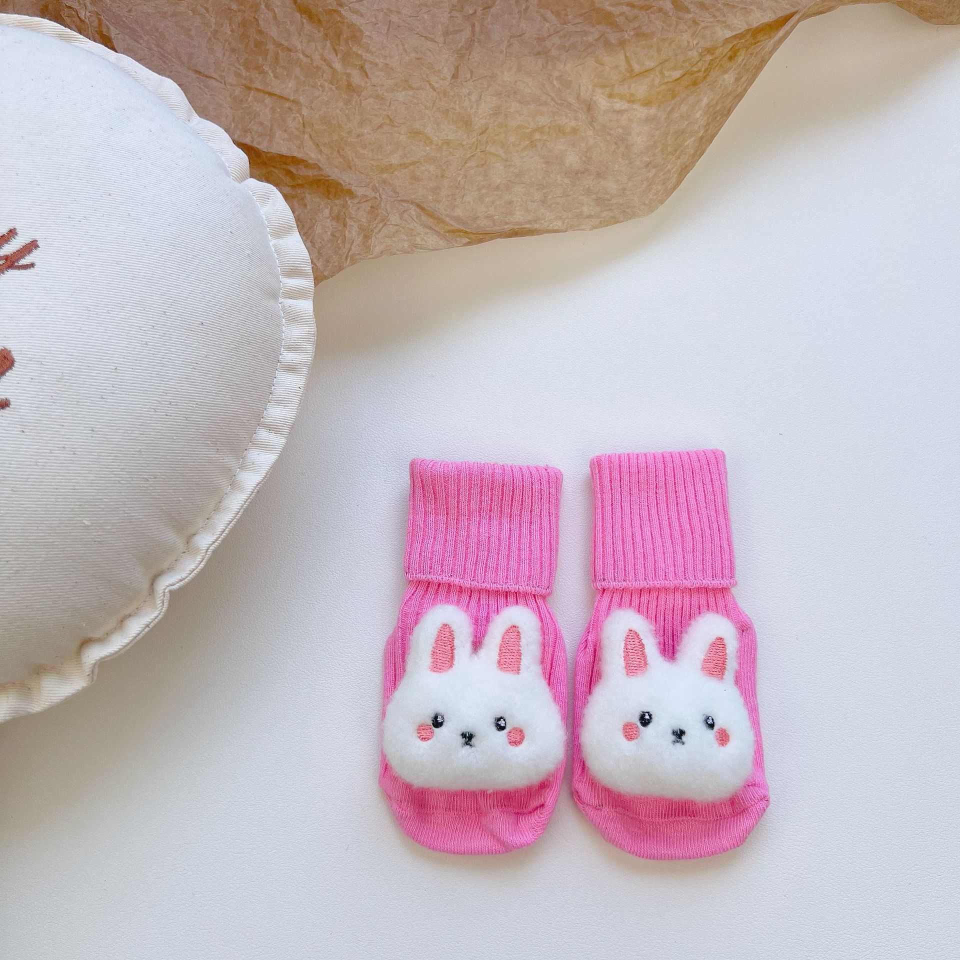 이중 바늘 인형 중간 튜브면 양말 사계절 입체 만화 인형 아기 양말 유아 바닥 양말 제조 업체 도매