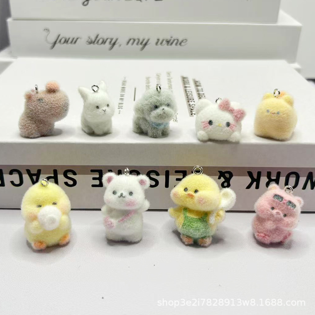 수지 플록 작은 펜던트 만화 입체 diy 키 체인 귀여운 작은 동물 휴대 전화 체인 가방 펜던트 액세서리