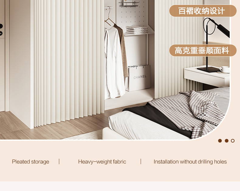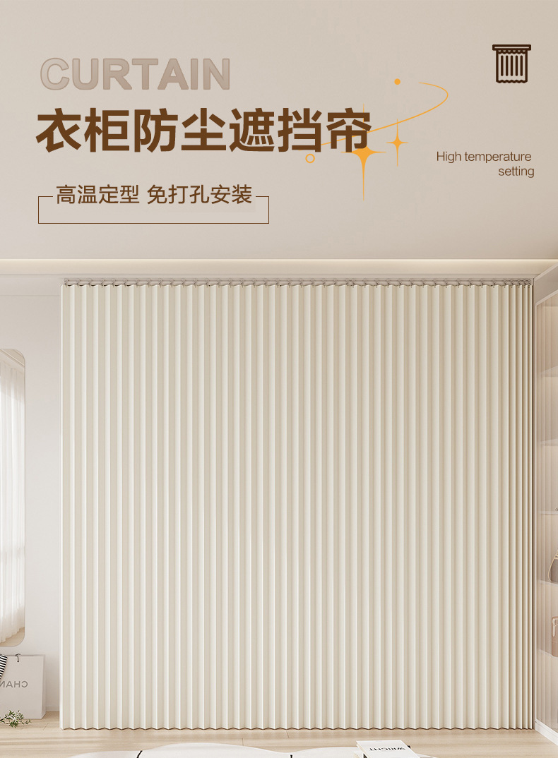가벼운 고급 옷장 커튼, 신발장, 책장, 방진 커튼, 펀치 없는 슬라이딩 레일 커튼, 옷장 커튼, 접이식 커튼
