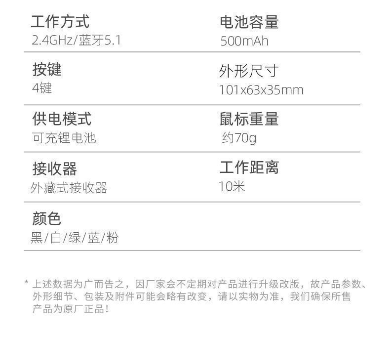 • [화이트] 싱글 모드 무선 2.4G 버전 + 충전 무음