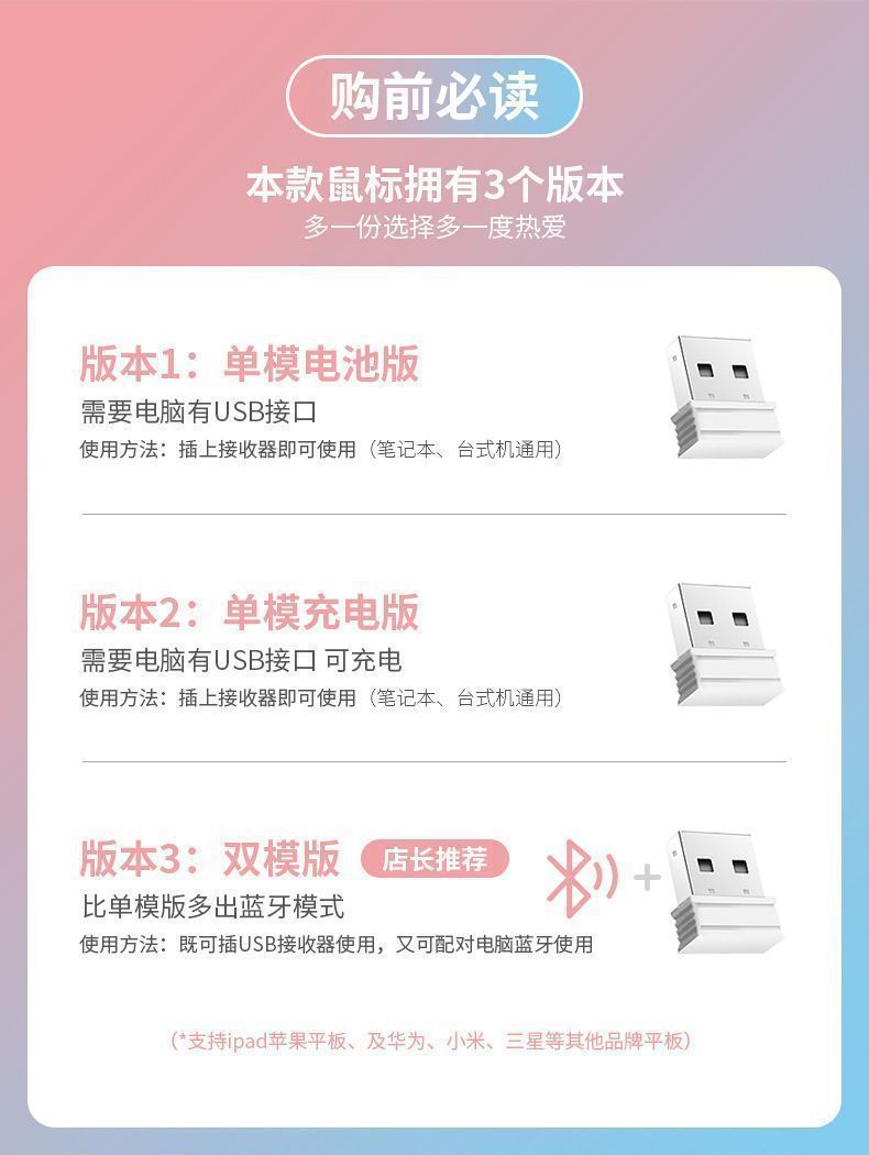 • [핑크] 배터리 버전 + 2.4G 무선 버전 무음