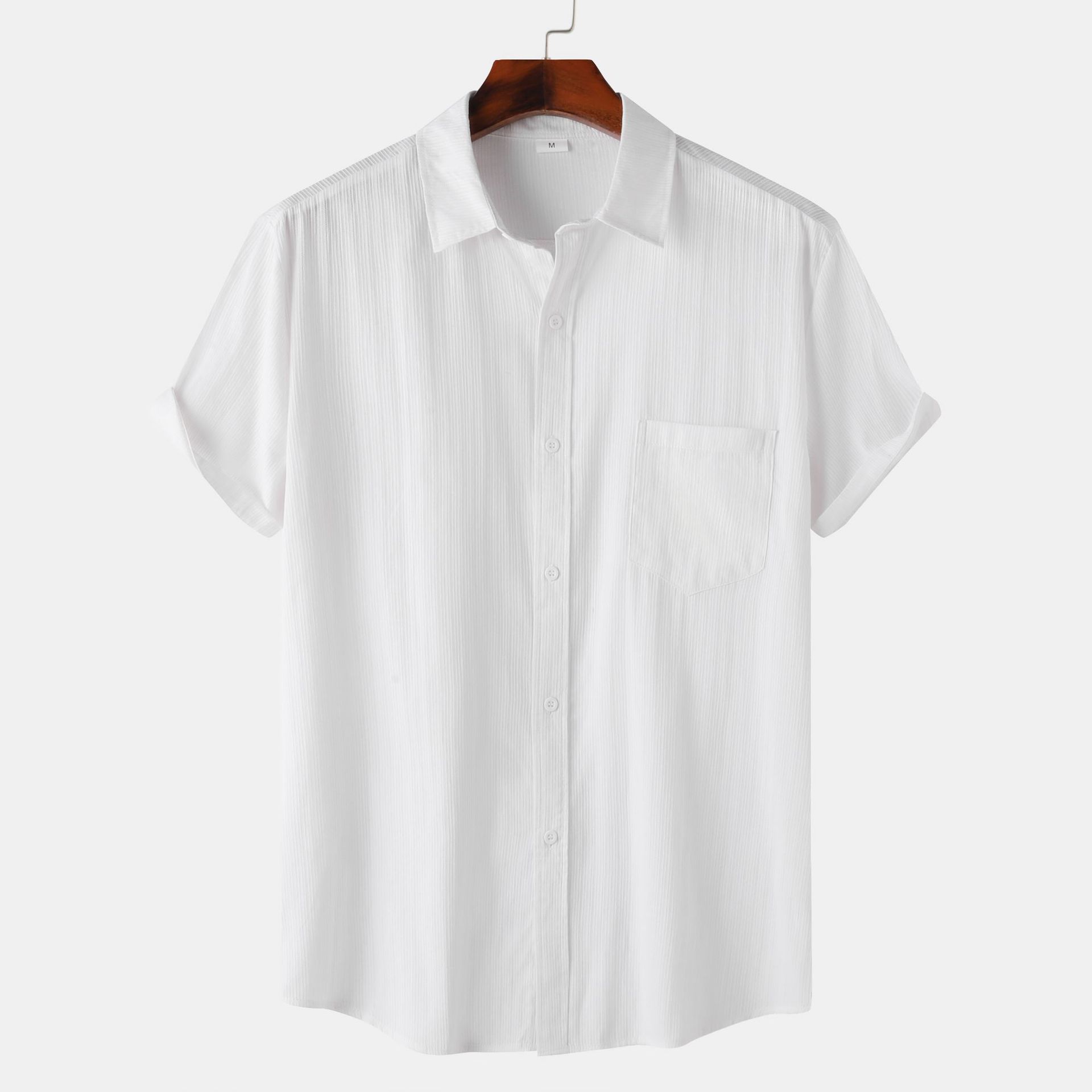2025 여름 아마존 신작 유럽과 미국 남성 작은 트위스트 솔리드 컬러 반팔 통근 셔츠 캐주얼 외출 소원