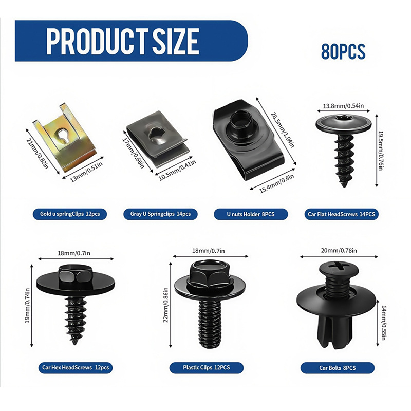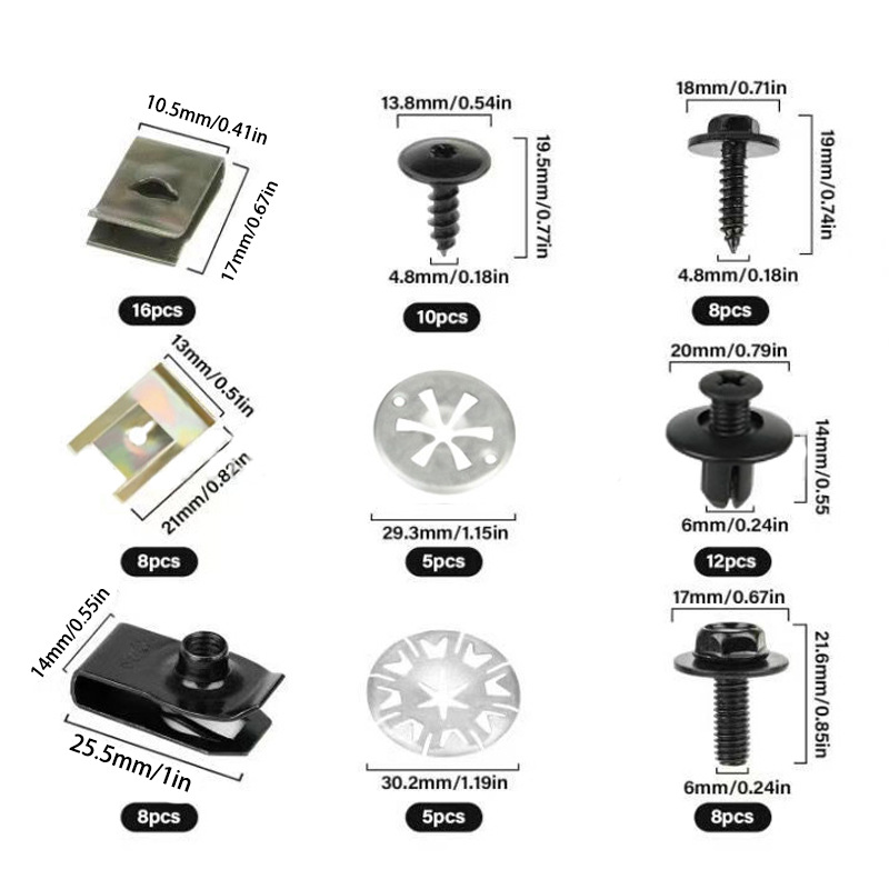 80PCS 자동차 스냅 U 자형 클립 너트 바디 나사 볼트 클립 키트 후드 절연 면 철 액세서리