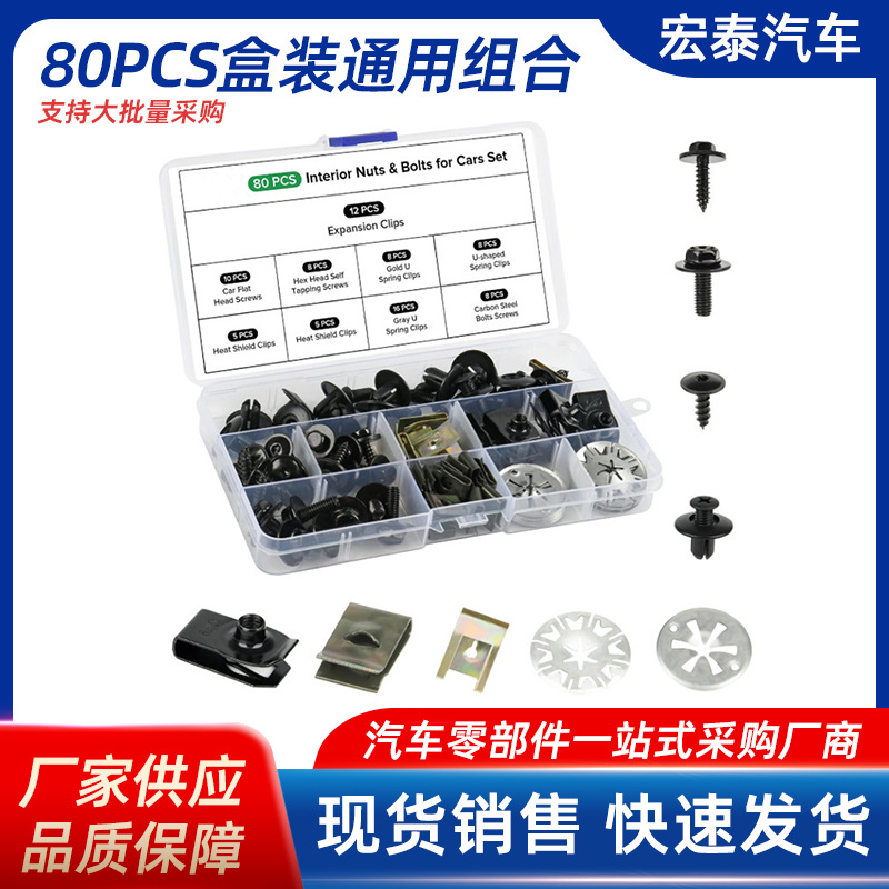 80PCS 자동차 스냅 U 자형 클립 너트 바디 나사 볼트 클립 키트 후드 절연 면 철 액세서리스토어 가기