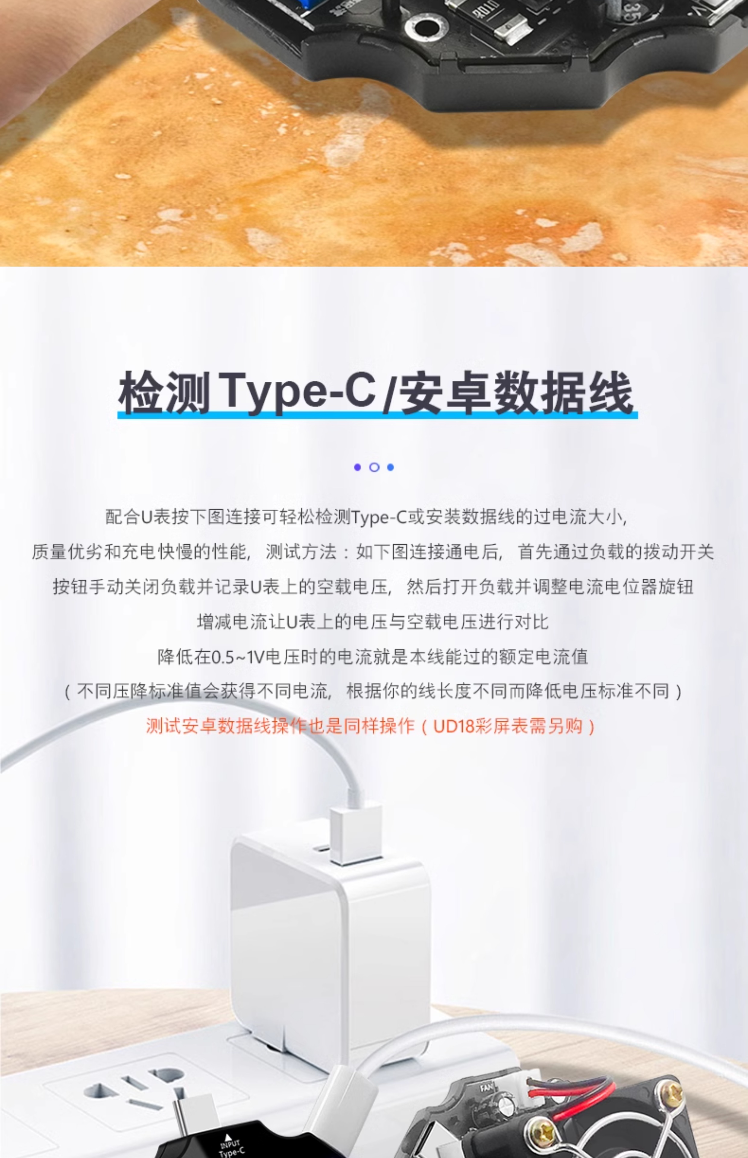 • UD24 Bluetooth 데이터 전송 2.4inch 고속 충전 감지 기능이 내장된 더 큰 컬러 화면 및 Qualcomm 고속 충전 트리거 호스트 + 65W 고전력 부하