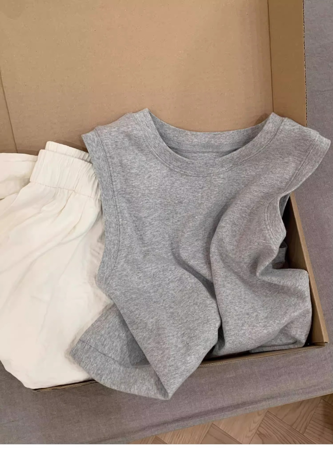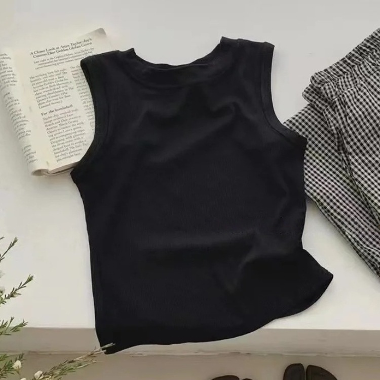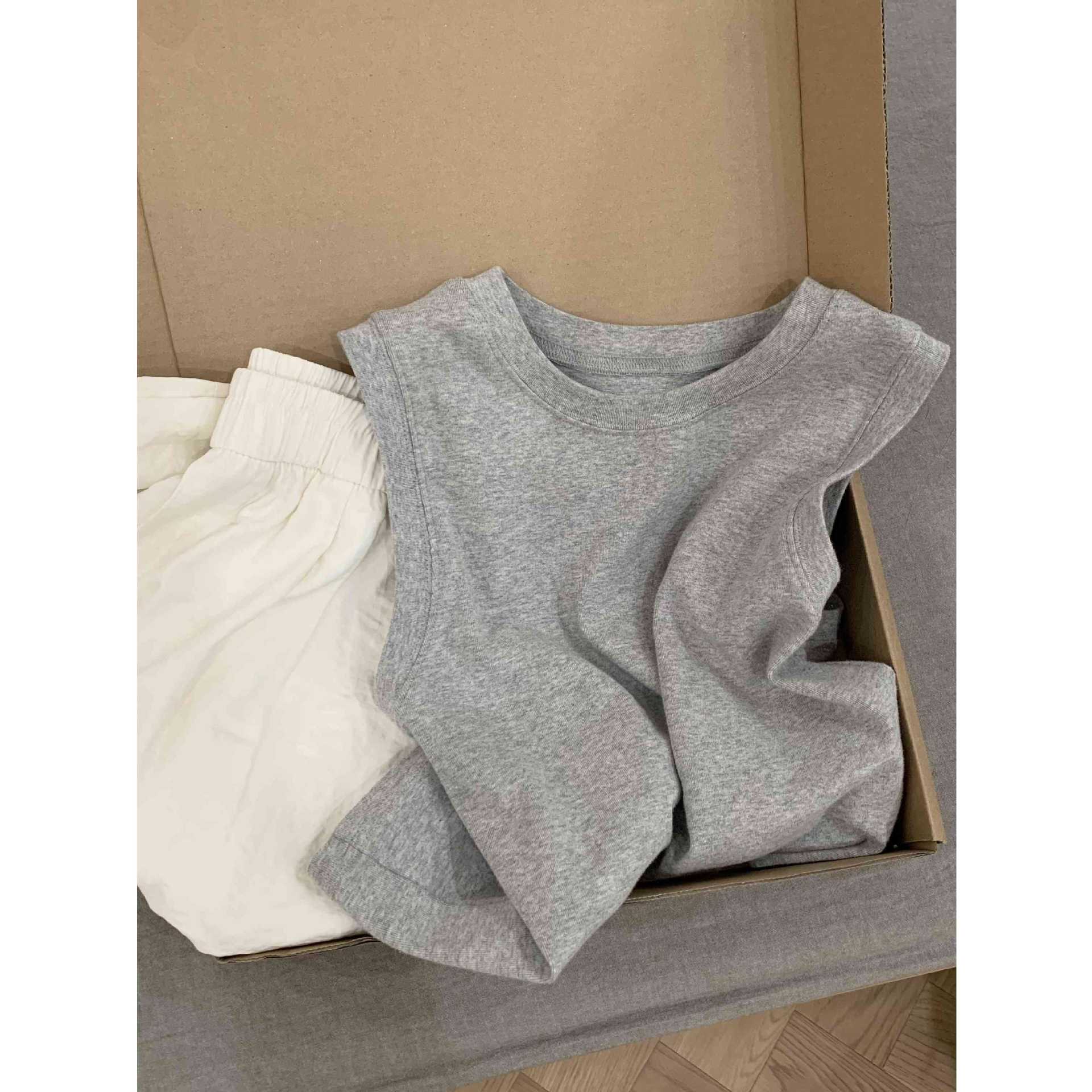 여름 여성용 가슴 커버 I자형 조끼, 루즈한 캐주얼 베이스 레이어 탑, 오른쪽 어깨 라운드 넥 민소매 서스펜더 조끼스토어 가기