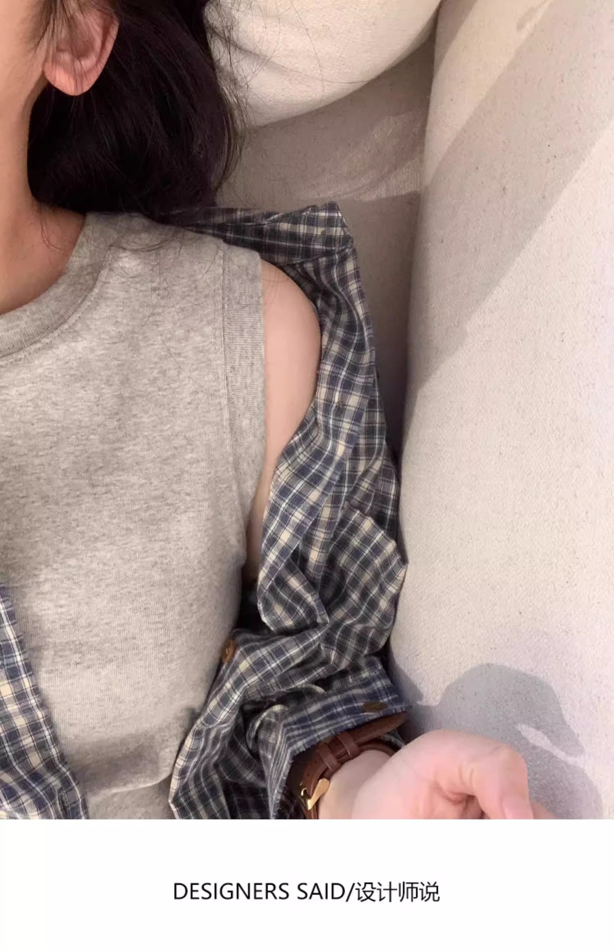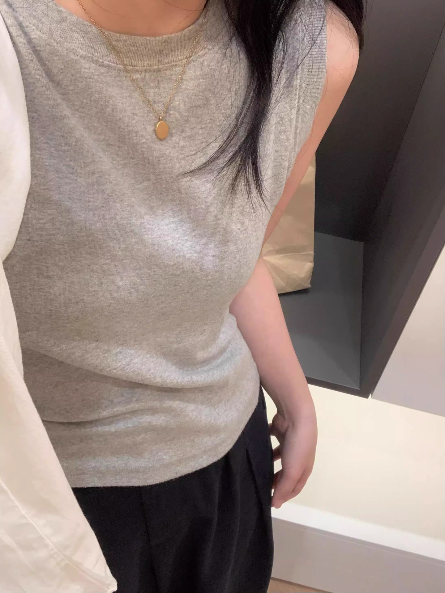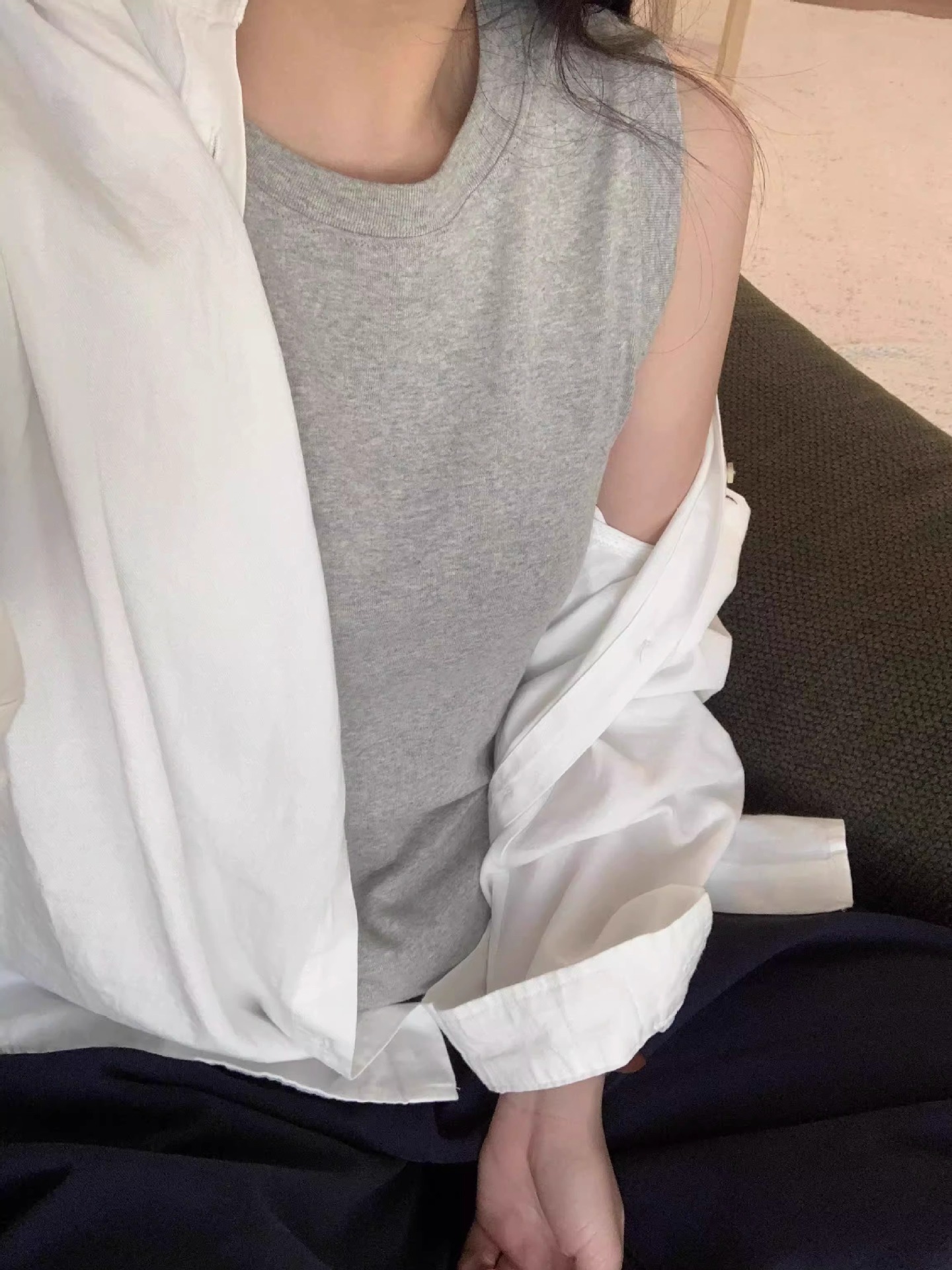 여름 여성용 가슴 커버 I자형 조끼, 루즈한 캐주얼 베이스 레이어 탑, 오른쪽 어깨 라운드 넥 민소매 서스펜더 조끼스토어 가기