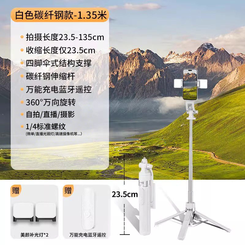 • 흰색 1m 다리 4개 [미니 핸드헬드 모델] 리모컨 + 듀얼 뷰티 라이트 포함