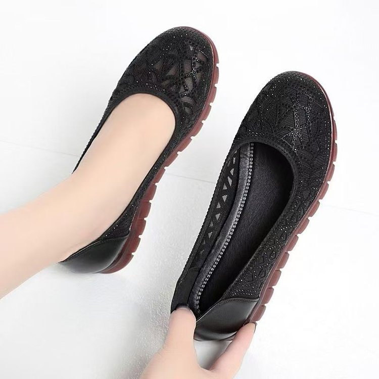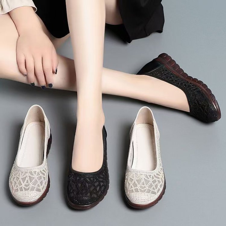 여름 여성 신발 부드러운 밑창 중공 메쉬 신발 2025 새로운 중년 및 노인 샌들 플랫 대형 어머니의 힘줄 밑창스토어 가기
