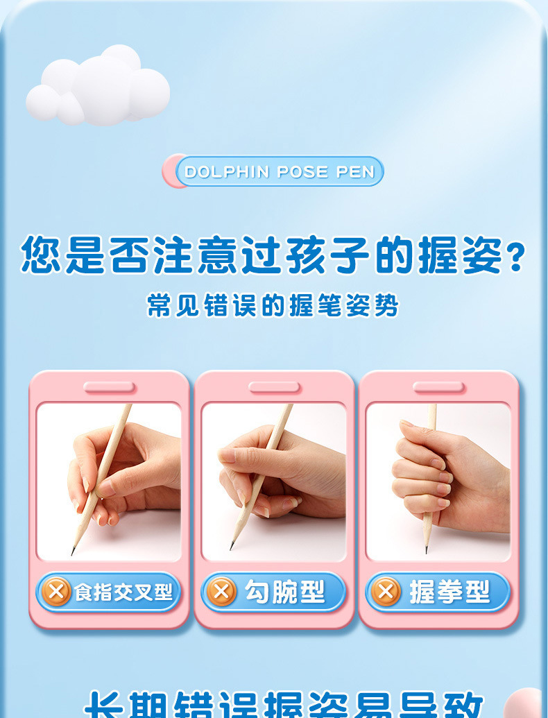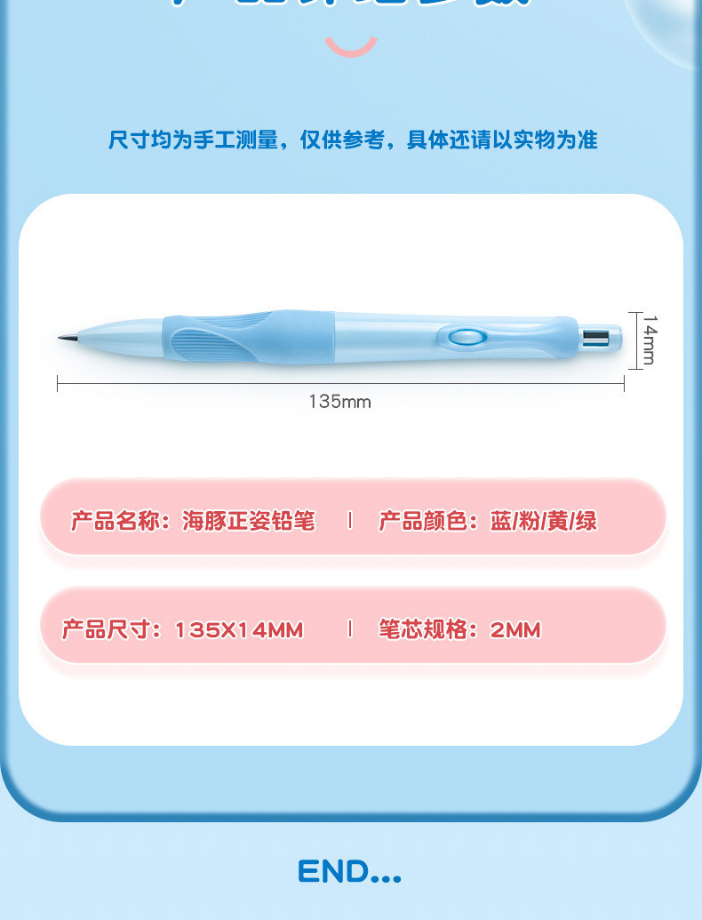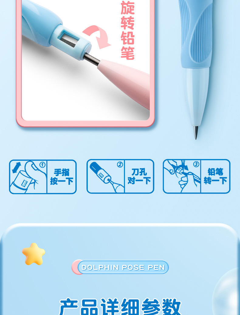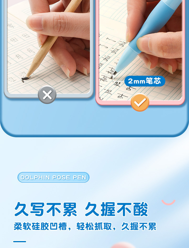 Tianzhuo Dolphin 포지셔닝 연필 초등학생 2.0 리드 프레스 연필 그립 자세 교정 자동 연필 깨지기 쉽지 않음