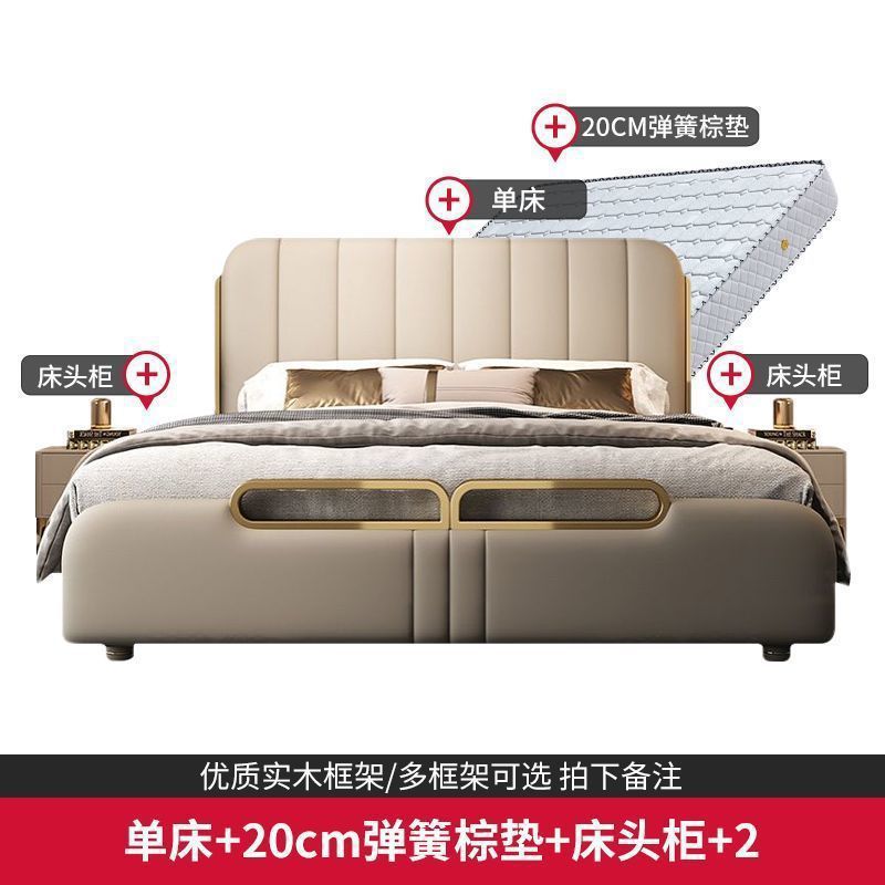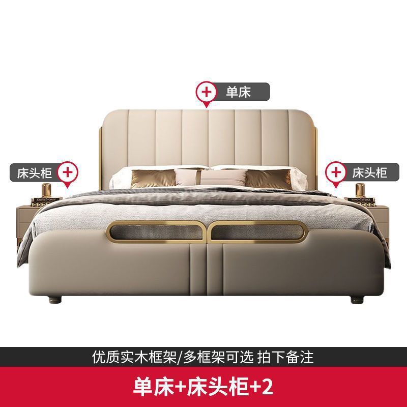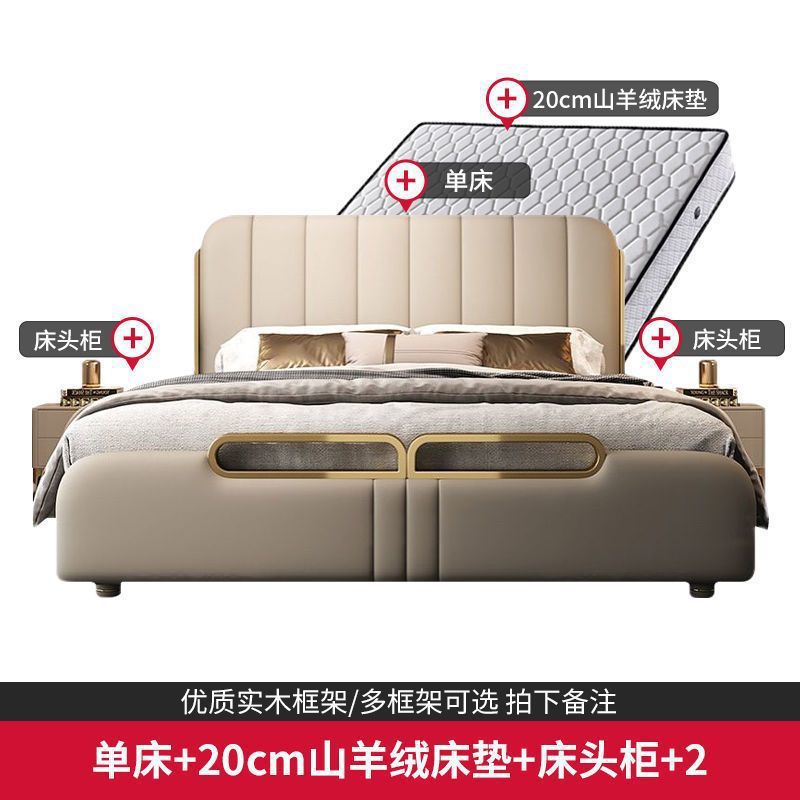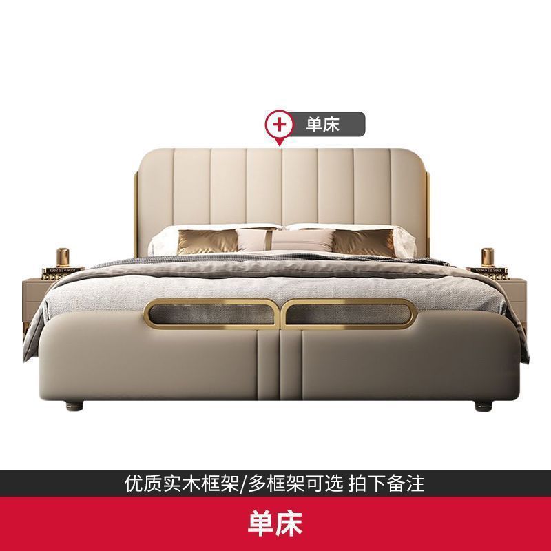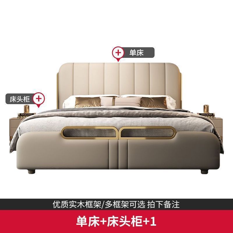 가벼운 고급 가죽 침대, 마스터 침실, 북유럽 모던 심플하고 분위기 있는 웨딩 침대, 소프트 박스 피아노 키 더블 침대, 미니멀리스트 이탈리안 침대스토어 가기