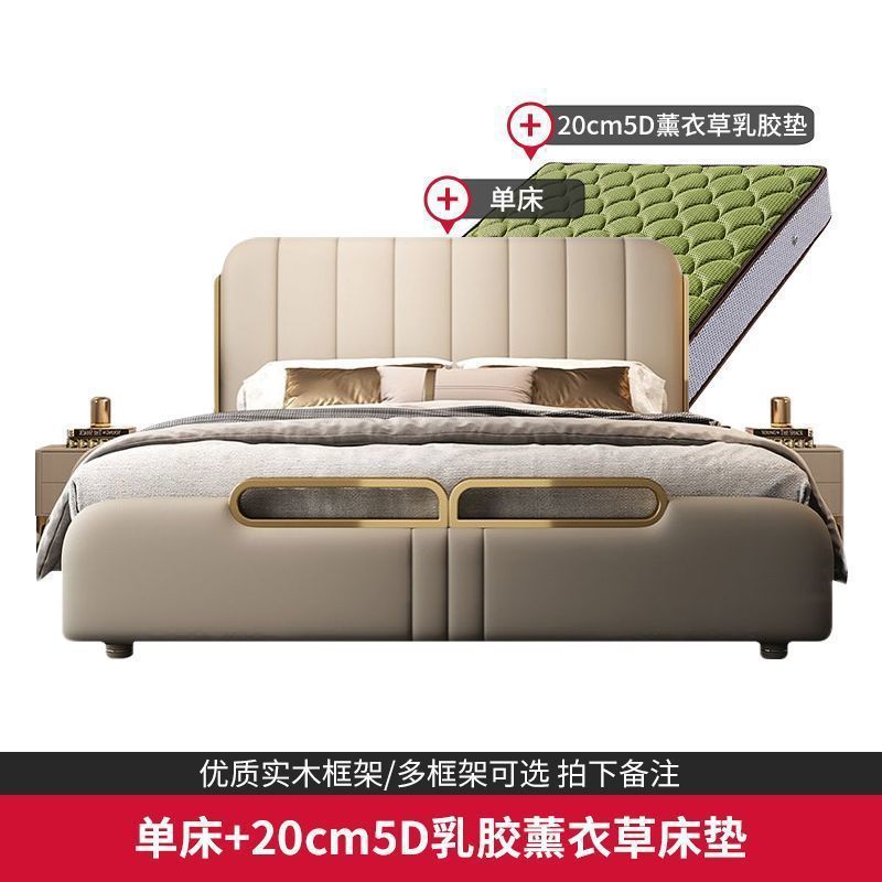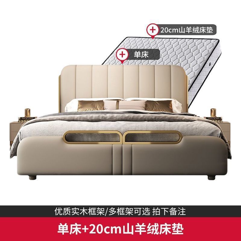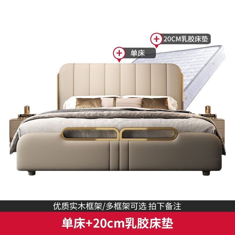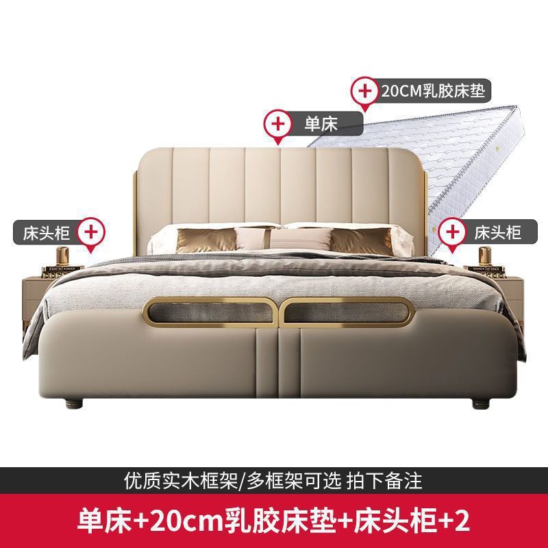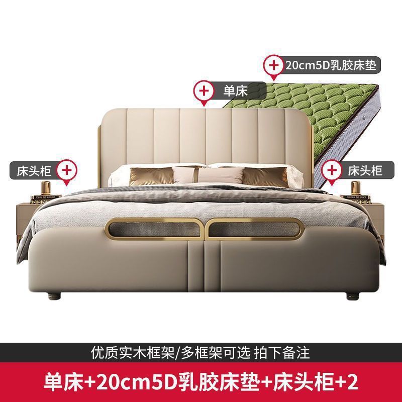 가벼운 고급 가죽 침대, 마스터 침실, 북유럽 모던 심플하고 분위기 있는 웨딩 침대, 소프트 박스 피아노 키 더블 침대, 미니멀리스트 이탈리안 침대스토어 가기