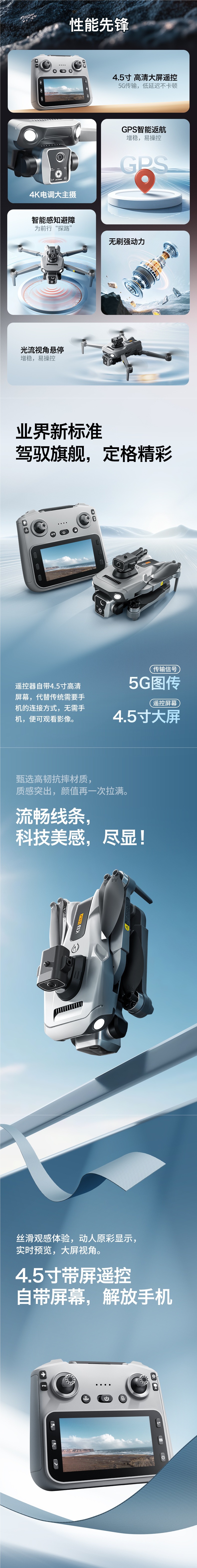 • 그레이 - 3전원 버전(GPS 자동 복귀 + 4.5inch 대형 화면 + 에어드롭)