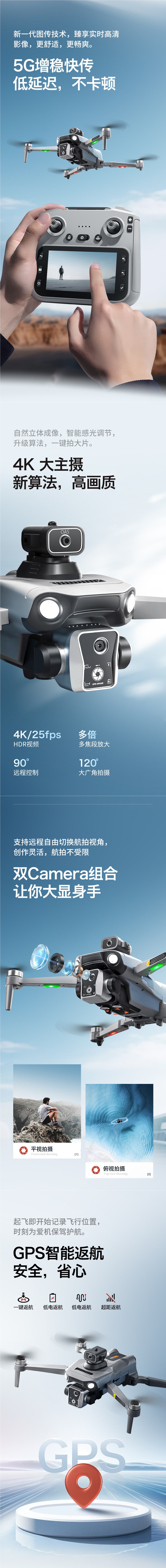 • 그레이 - 단일 배터리 버전(GPS 자동 복귀 + 4.5inch 대형 화면 + 에어드롭)