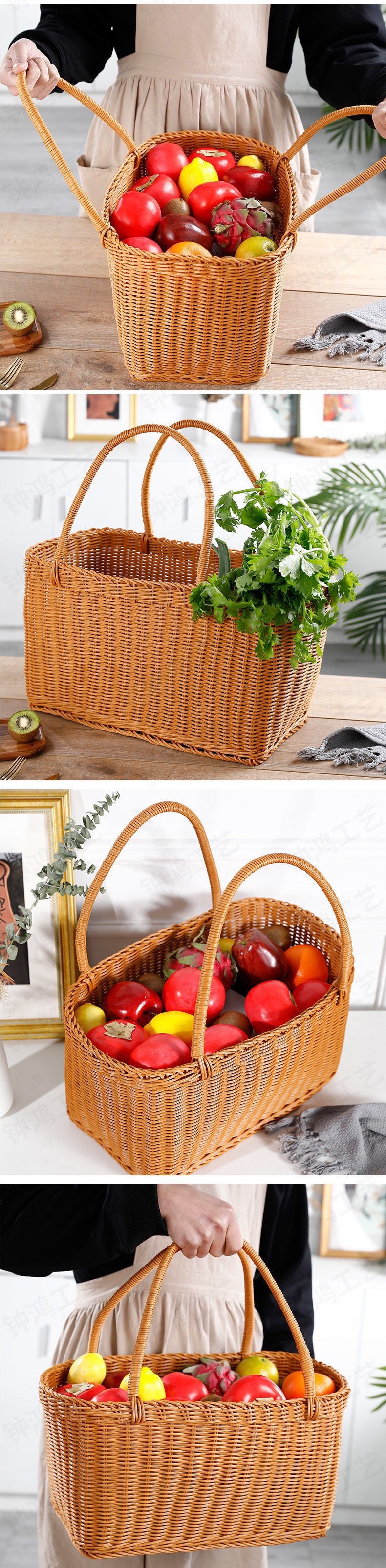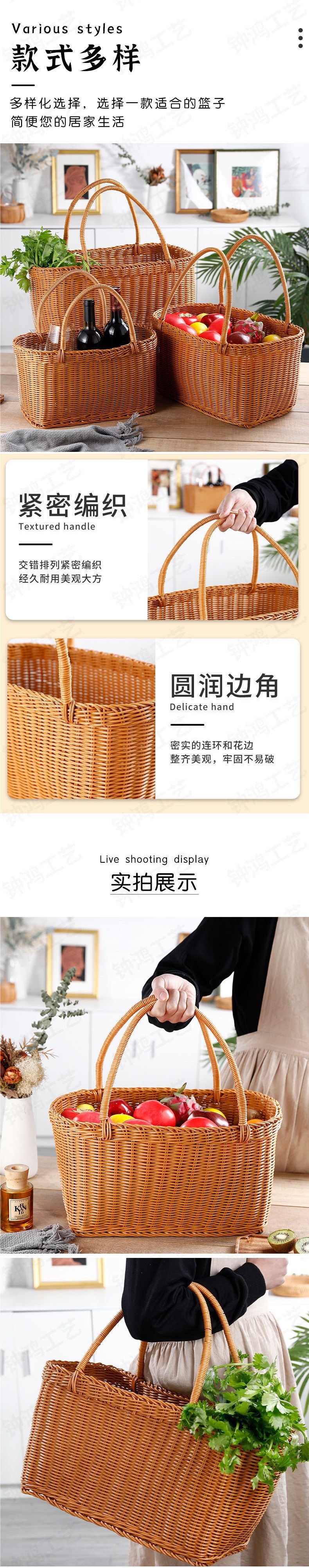 모조 등나무 쇼핑 바구니 플라스틱 짠 바구니 쇼핑 바구니 애완 동물 피크닉 전기 자동차 목가적 인 스타일 휴대용 바구니스토어 가기