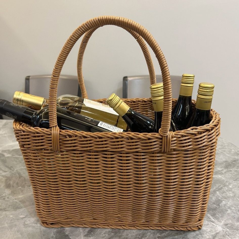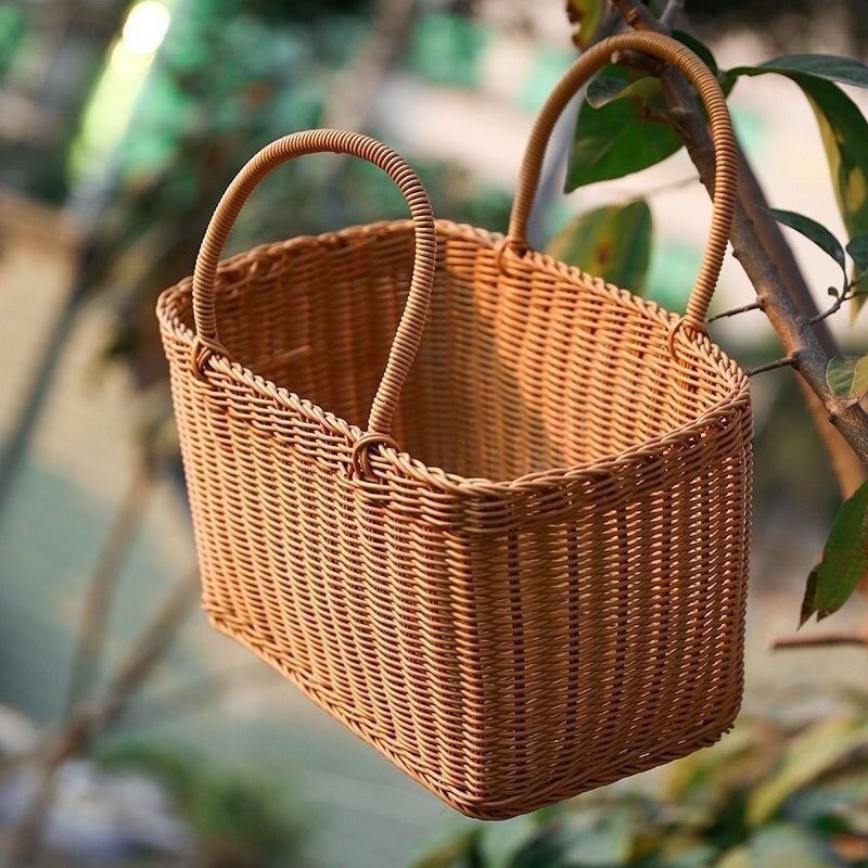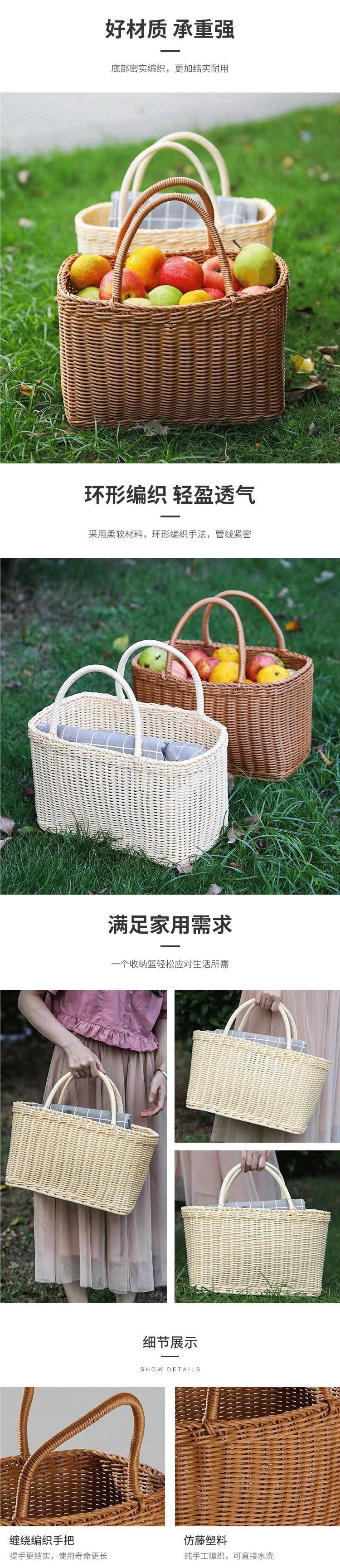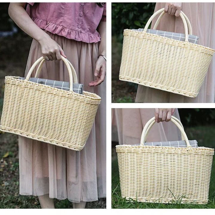 모조 등나무 쇼핑 바구니 플라스틱 짠 바구니 쇼핑 바구니 애완 동물 피크닉 전기 자동차 목가적 인 스타일 휴대용 바구니