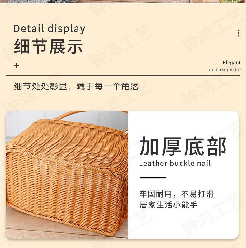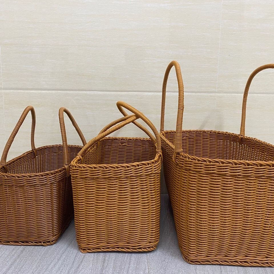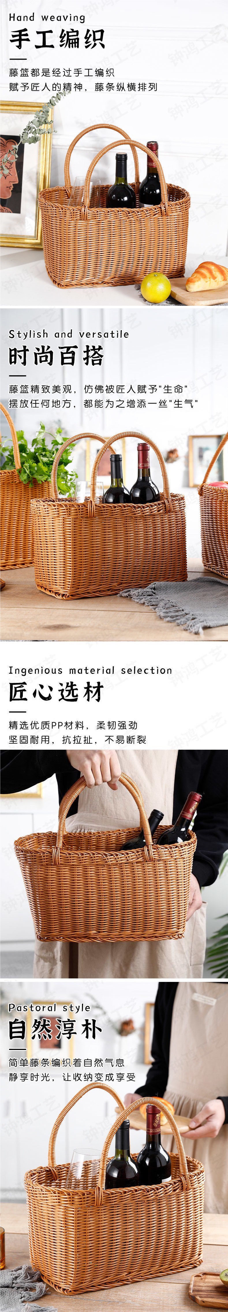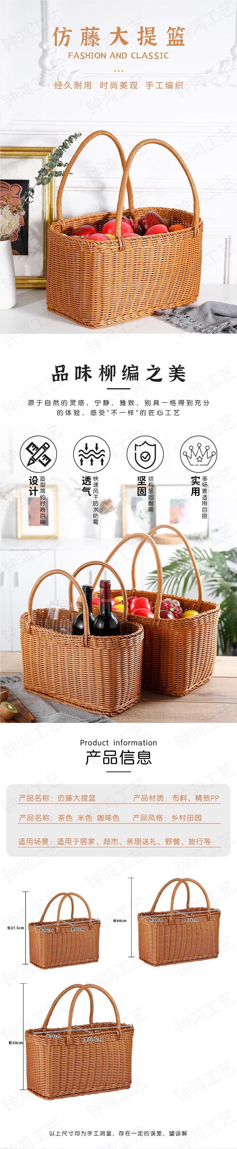 모조 등나무 쇼핑 바구니 플라스틱 짠 바구니 쇼핑 바구니 애완 동물 피크닉 전기 자동차 목가적 인 스타일 휴대용 바구니