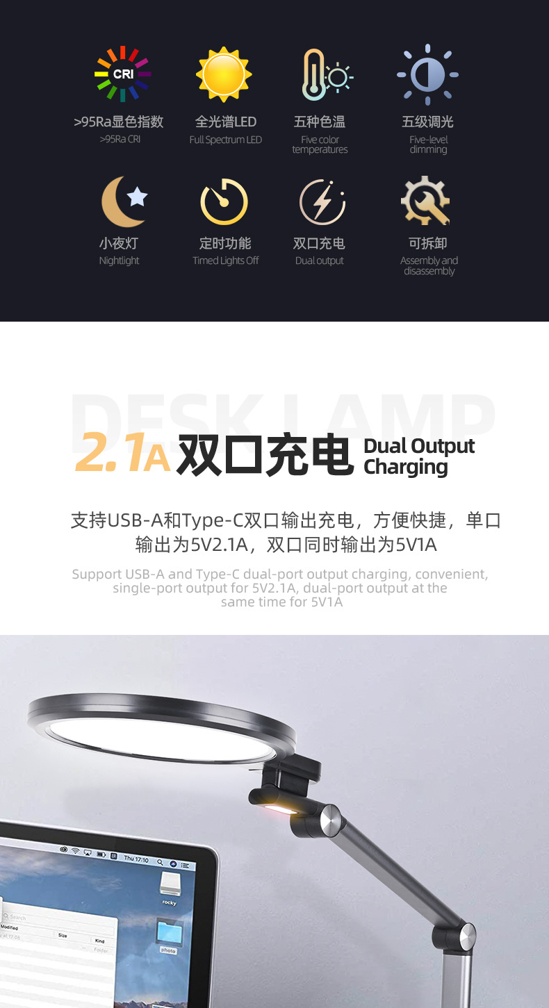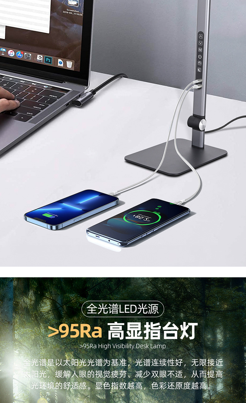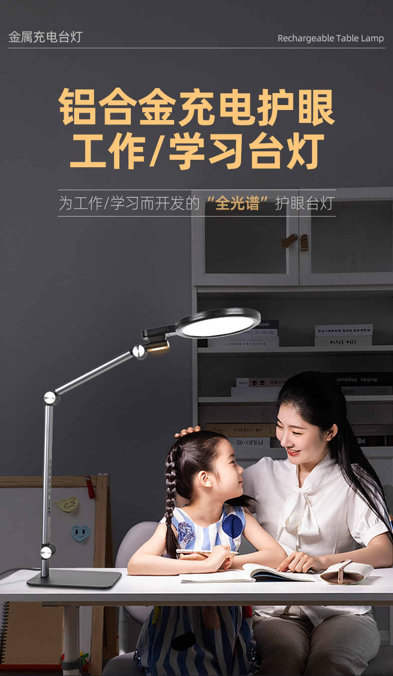 전체 스펙트럼 눈 보호 테이블 램프 알루미늄 합금 범용 샤프트 접이식 사무실 컴퓨터 독서 학습 충전식 LED 테이블 램프