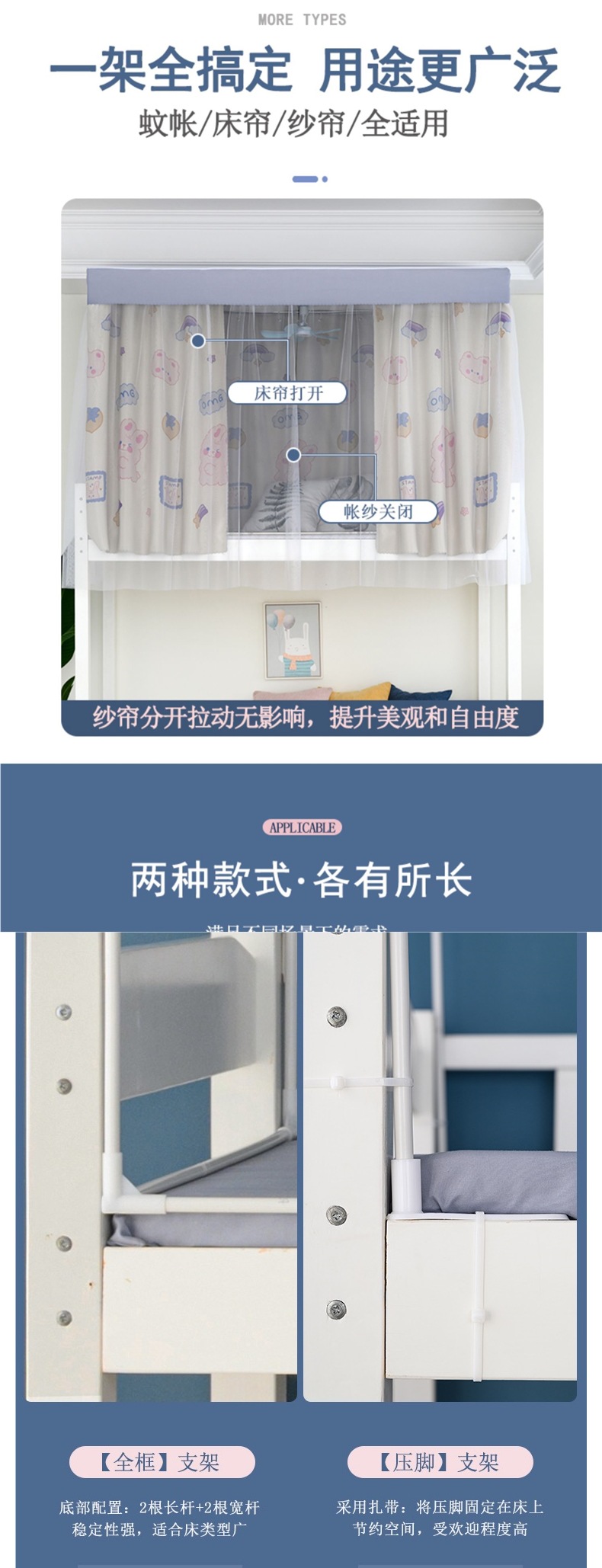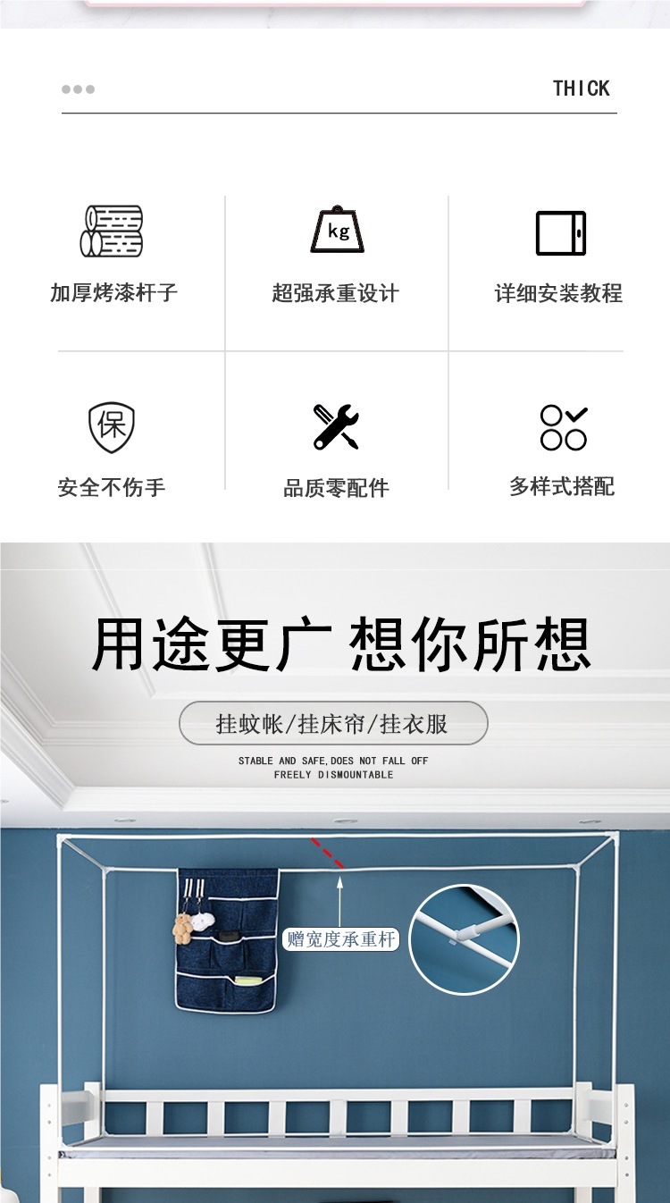 대학생 기숙사용 개폐식 침대 커튼 브래킷, 모기장, 두꺼운 침대 커튼 막대, 이층 침대, 싱글 침대, 두꺼운