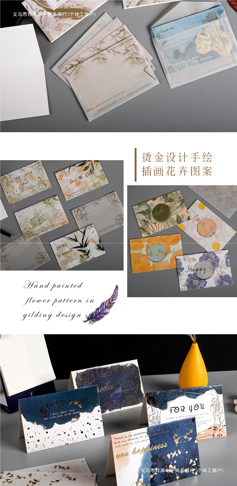 핫 스탬핑 인사말 카드 생일 빈 카드 종이 필기 축복 카드 감사 발렌타인 데이 편지 봉투 세트 인사말 카드스토어 가기