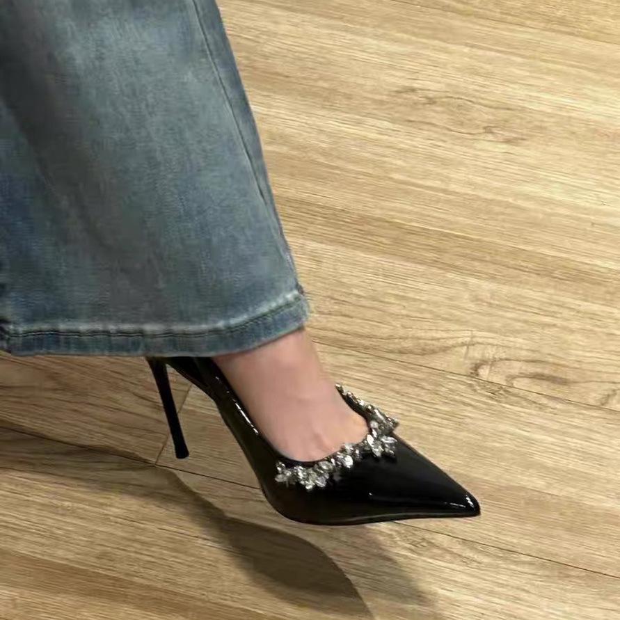 2338-1 프렌치 스타일의 아름다운 뾰족한 라인스톤 하이힐, 페이턴트 가죽 섹시한 여성화, 뒷끈이 없는 초하이힐