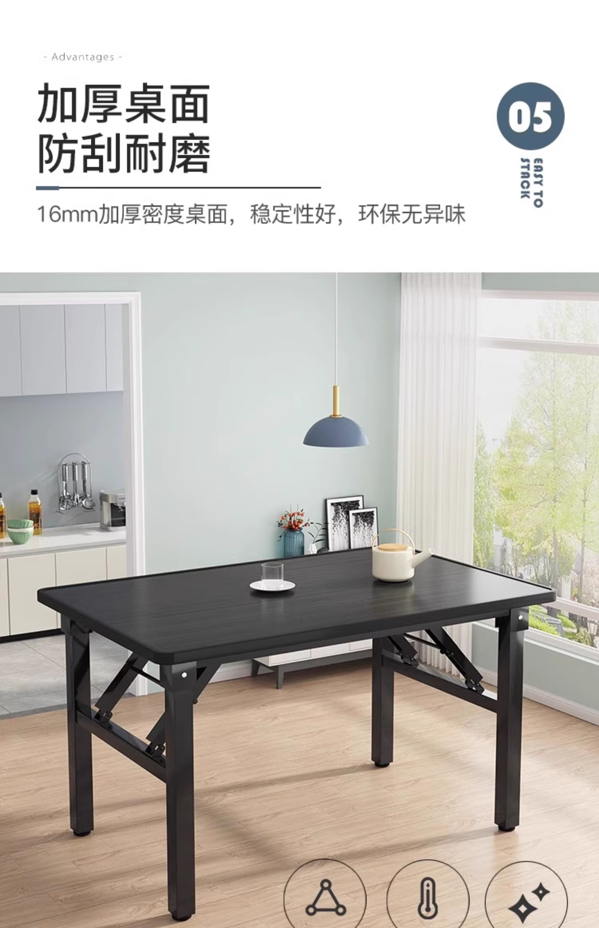 • 100*60*53 긴 테이블 사과나무 검정색 다리 [업그레이드되고 두꺼워진 테이블 다리] 짧은 스타일