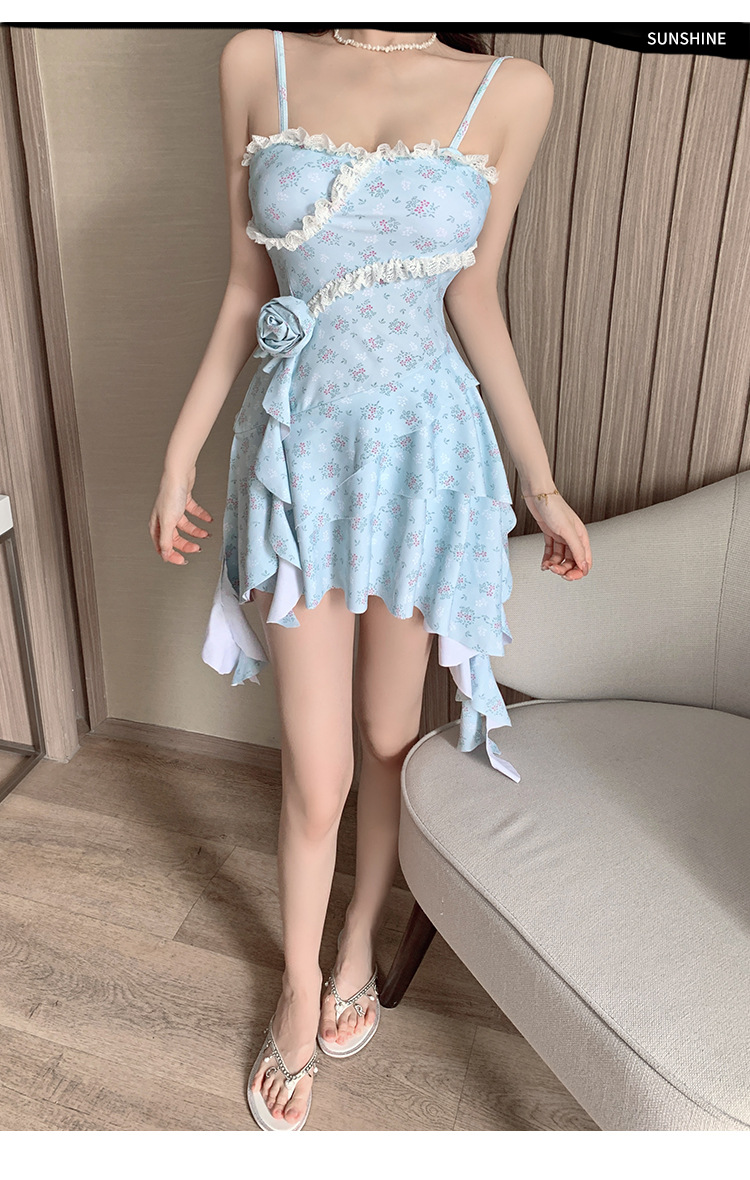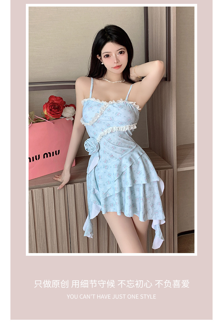 여름 여성을 위한 섹시하고 패셔너블한 꽃무늬 서스펜더 스커트 원피스 수영복, 배를 커버하고 슬림하게 만들어주는 요정 스타일의 하이엔드 2025 새로운 스타일