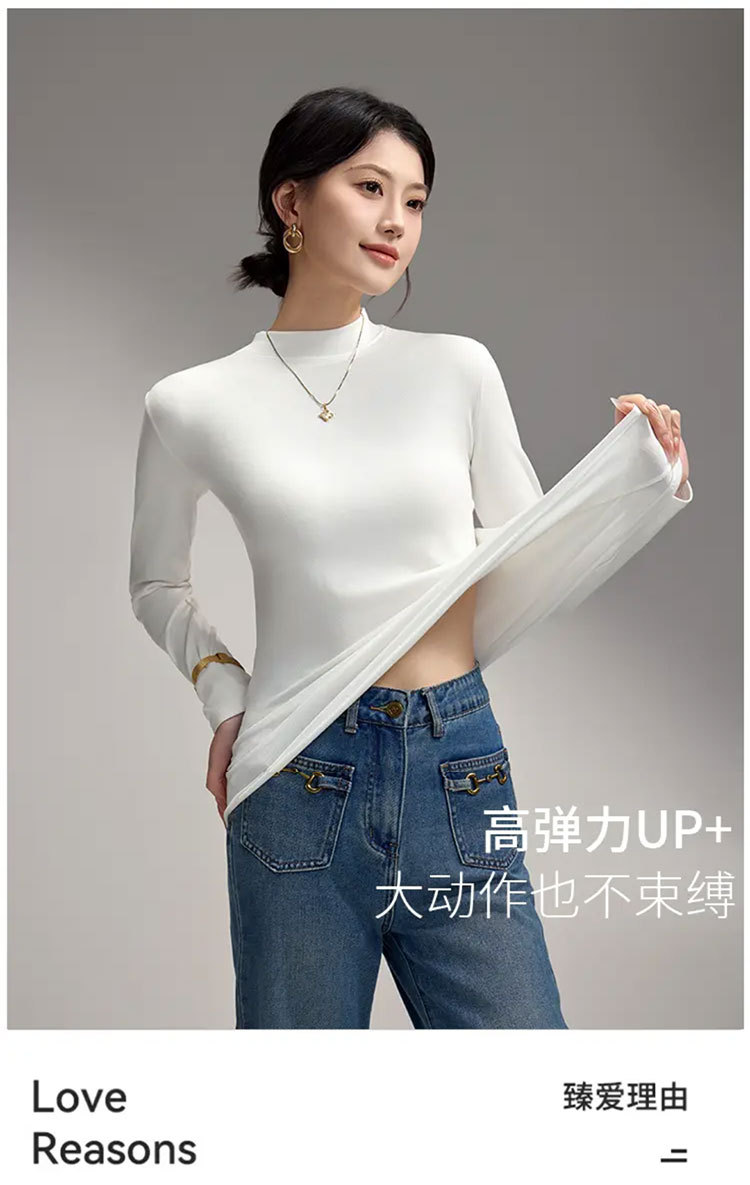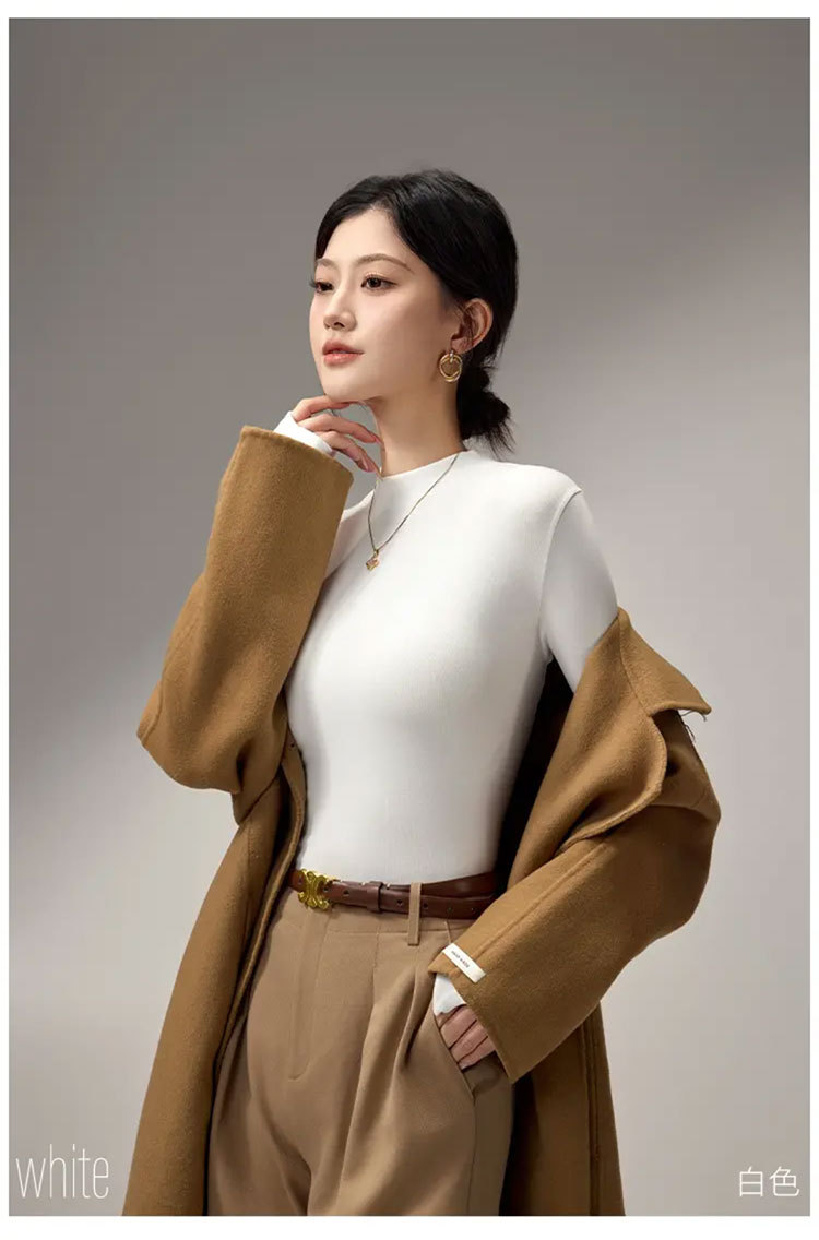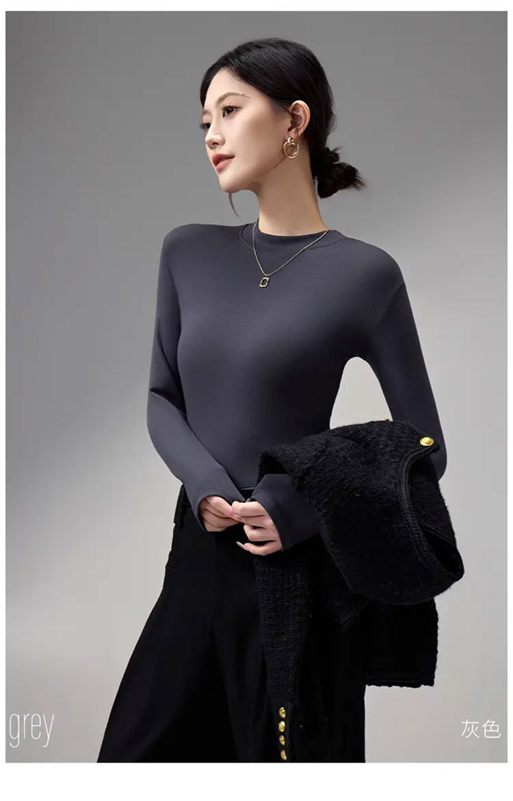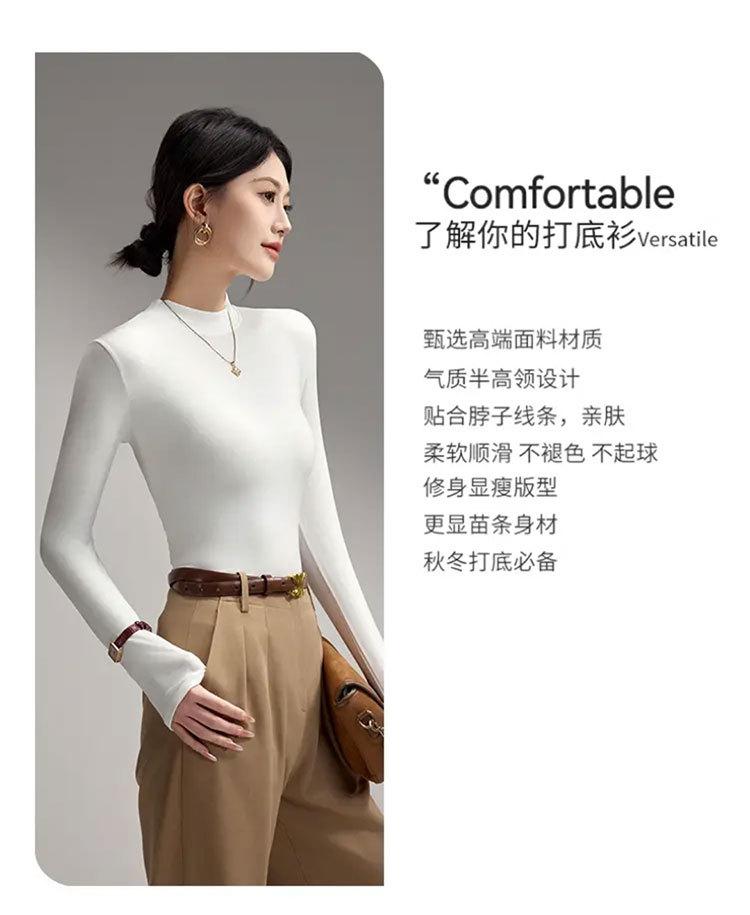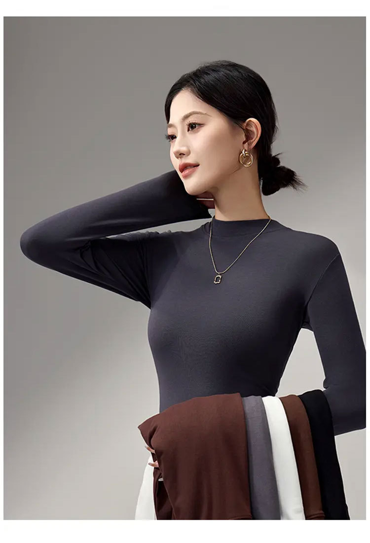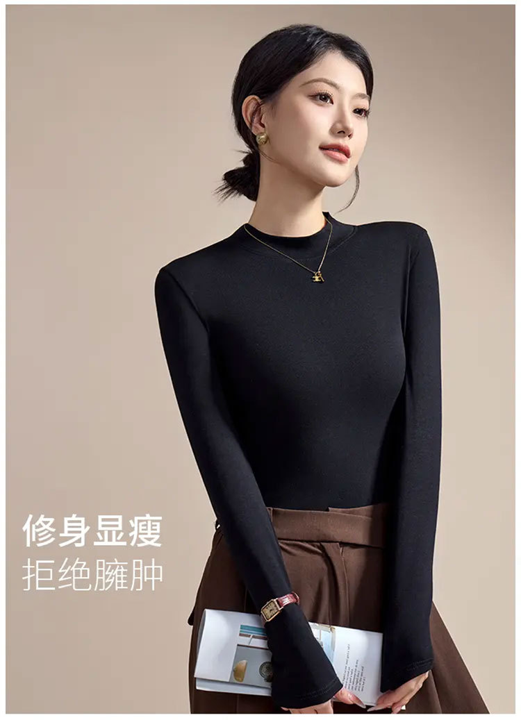 여성용 모달 스몰 스탠드 칼라 바텀 셔츠, 긴팔 봄, 가을, 겨울 플러스 벨벳 슬림핏 여성용 하프 터틀넥 이너 탑