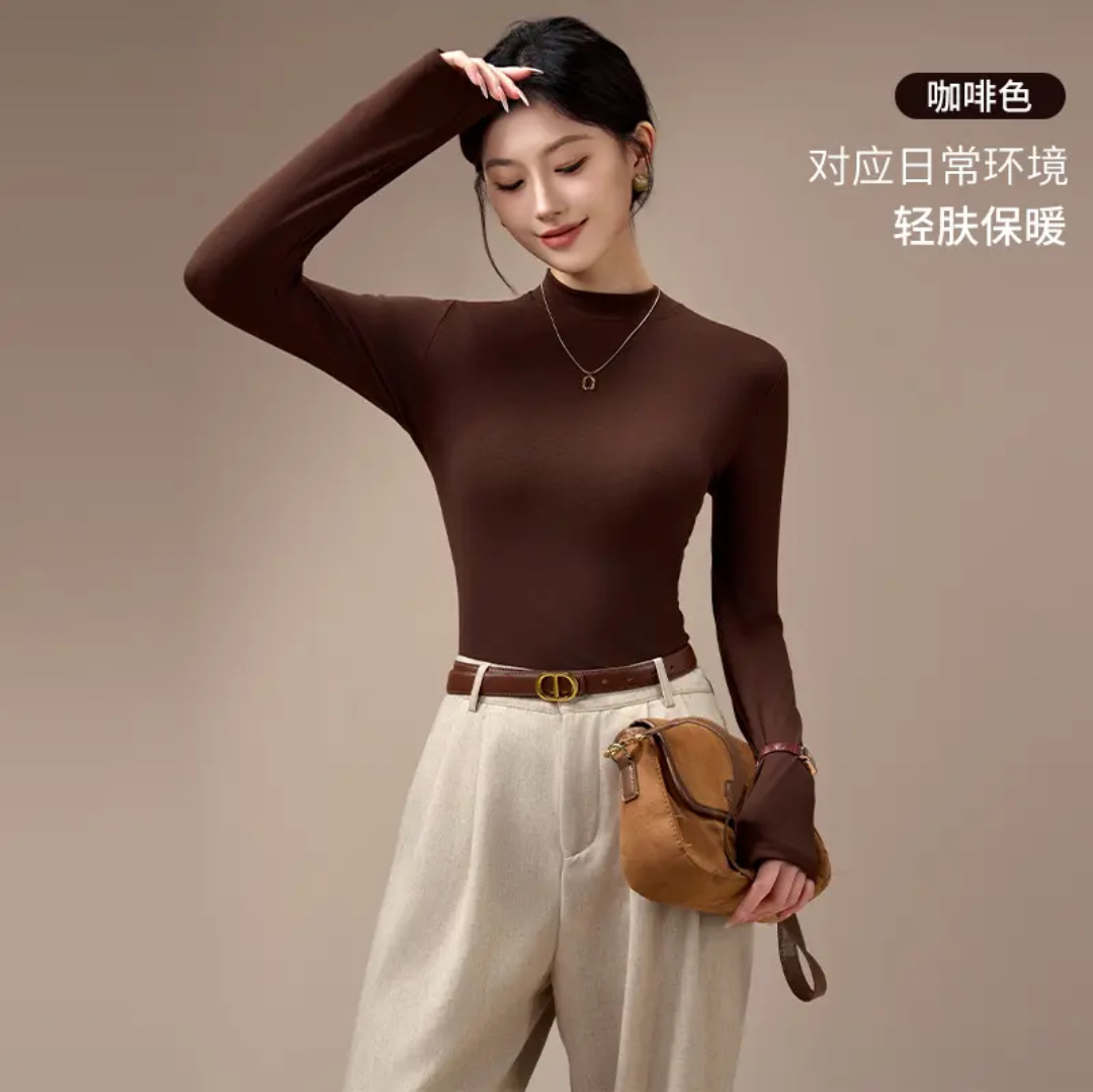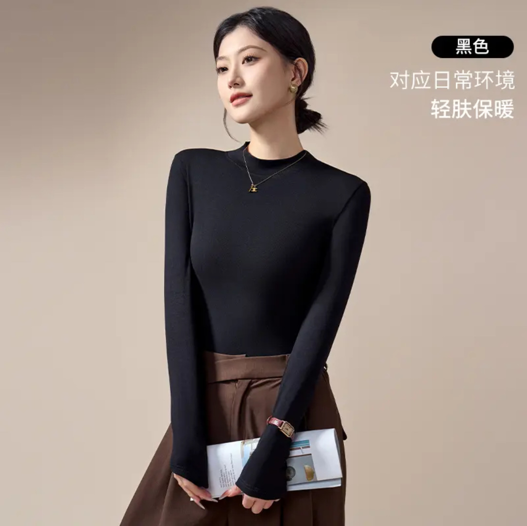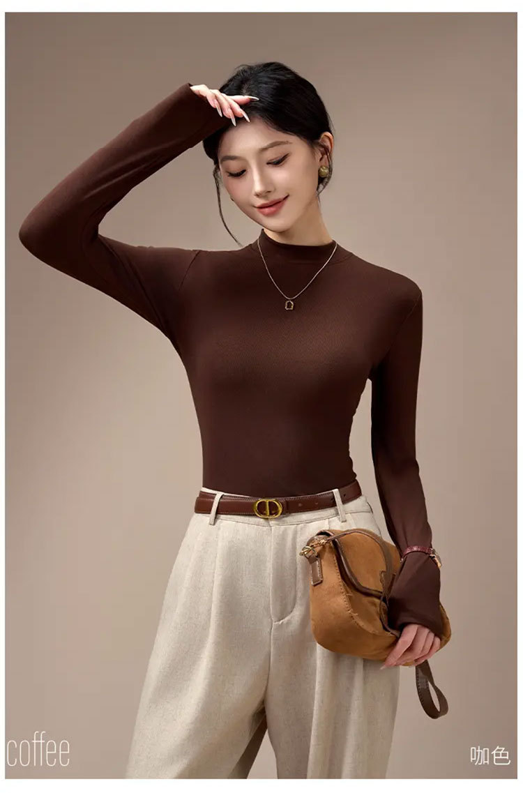 여성용 모달 스몰 스탠드 칼라 바텀 셔츠, 긴팔 봄, 가을, 겨울 플러스 벨벳 슬림핏 여성용 하프 터틀넥 이너 탑스토어 가기