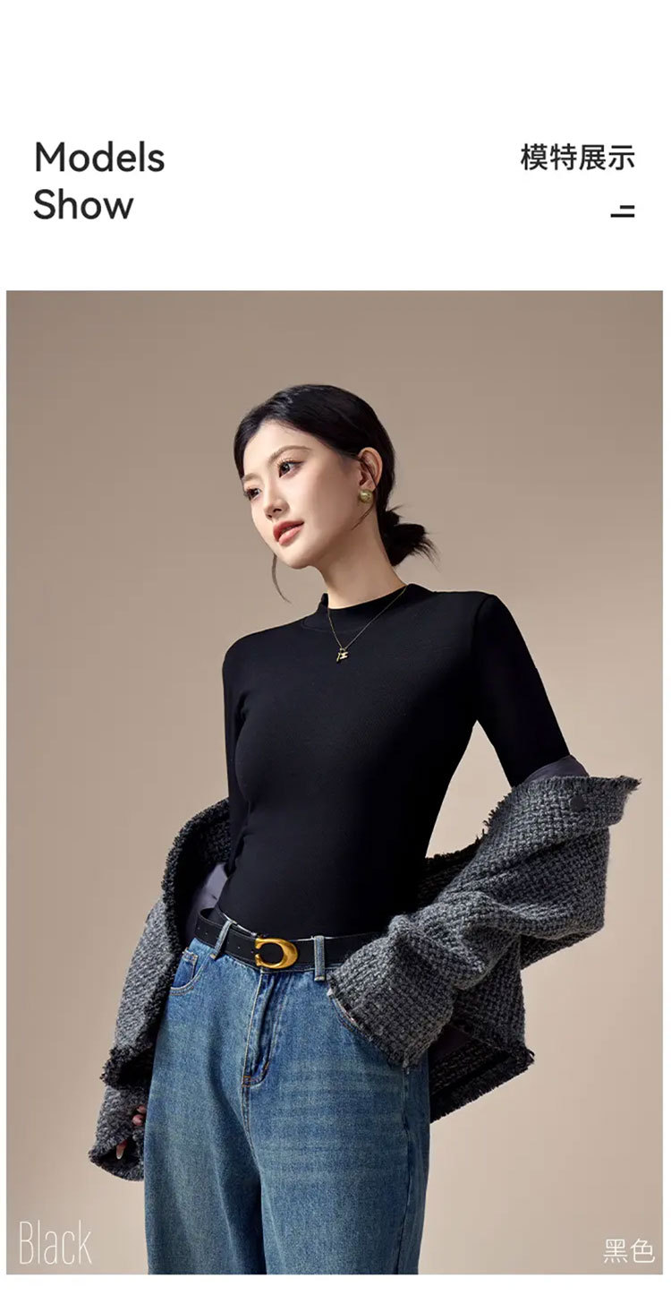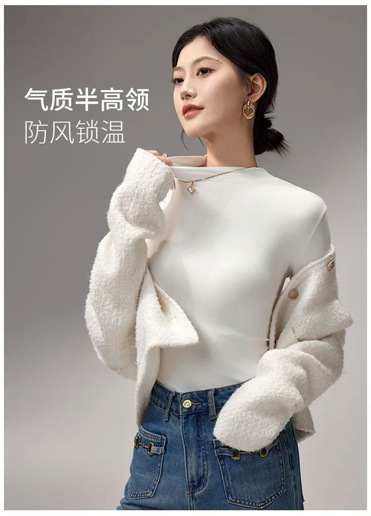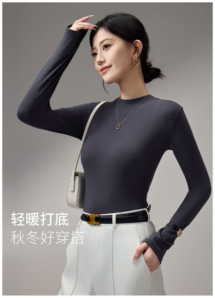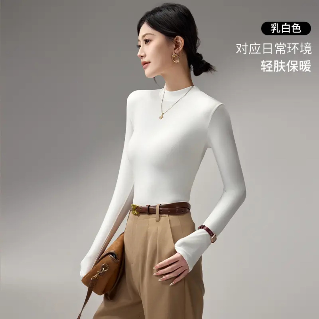 여성용 모달 스몰 스탠드 칼라 바텀 셔츠, 긴팔 봄, 가을, 겨울 플러스 벨벳 슬림핏 여성용 하프 터틀넥 이너 탑스토어 가기
