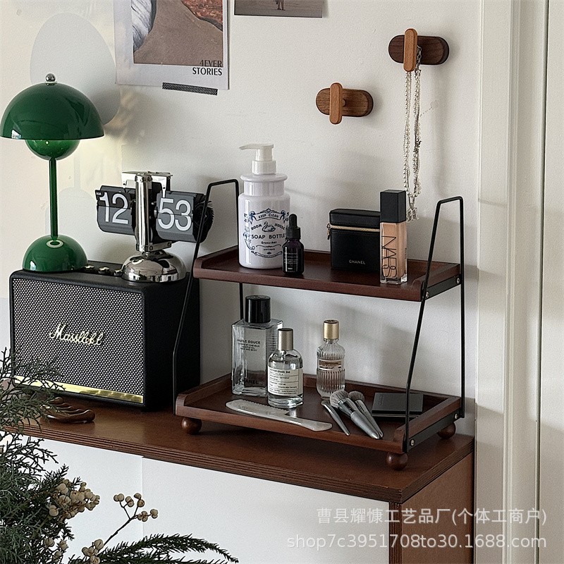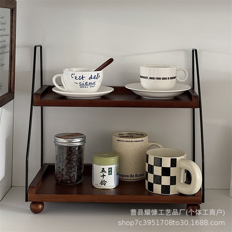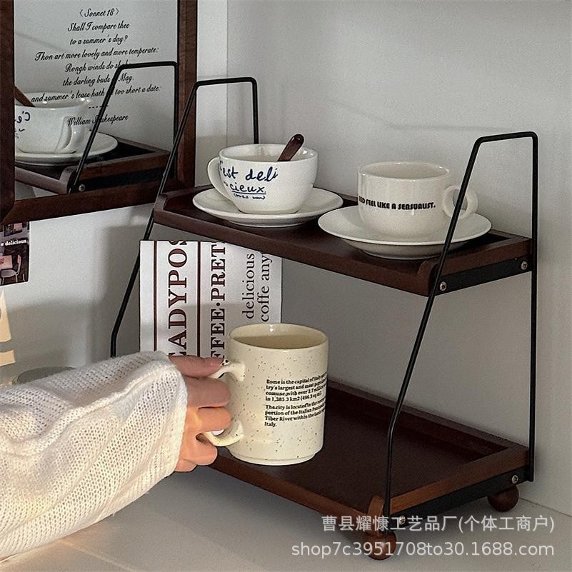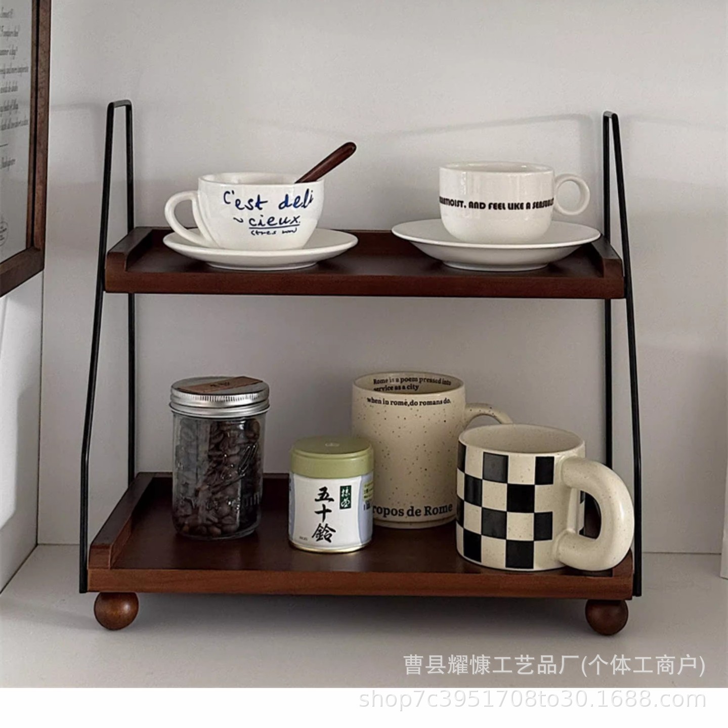 스팟 목재 수납선반, 다기능 2단 컵홀더, 주방 양념병 수납선반, 철목 결합 수납선반