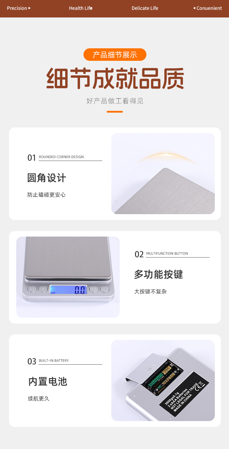 배터리 전자 주방 저울, 휴대용 및 정확한 스테인레스 스틸 보석 저울, 가정용 그램 베이킹 저울을 공장에서 직접 공급스토어 가기