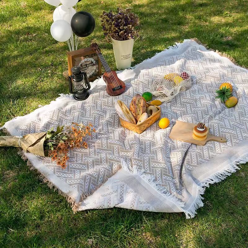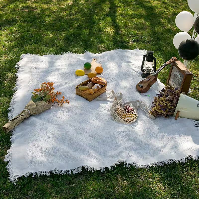 Ins 스타일 비치 매트 두꺼운 흰색 야외 캠핑 매트 피크닉 매트 피크닉 천 인터넷 연예인 용품 소품 식탁보