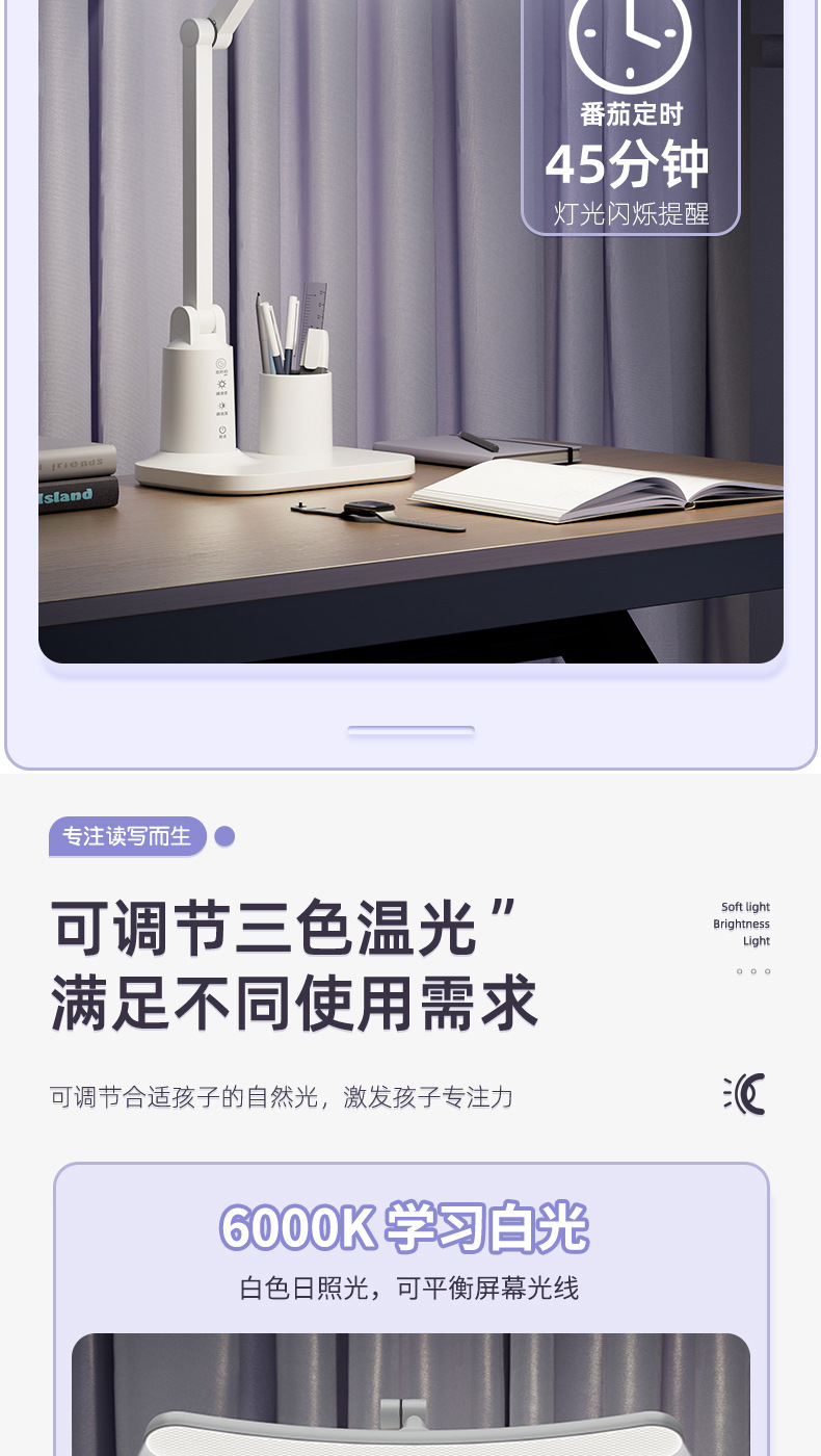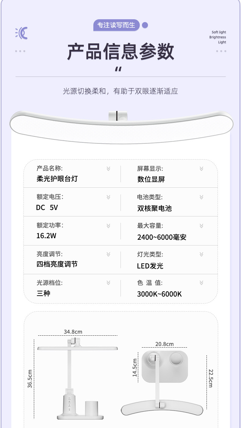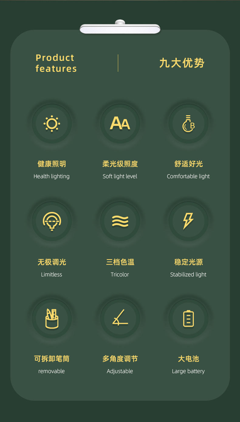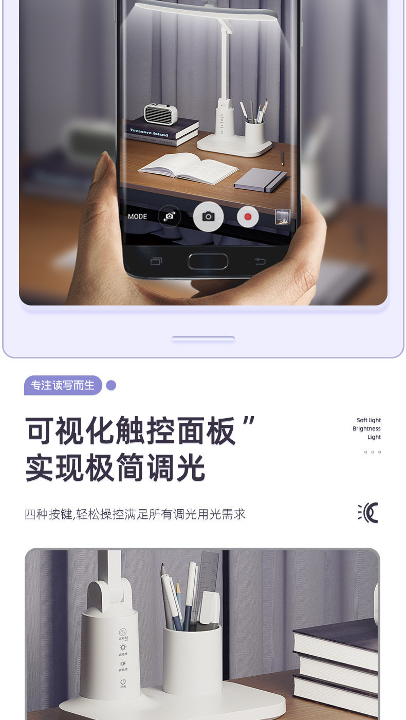 • PRO 책장 하이엔드 버전 + 배터리 수명 6000 + 3가지 색온도 + 허니컴 렌즈 + 펜 홀더 + 충전 헤드
