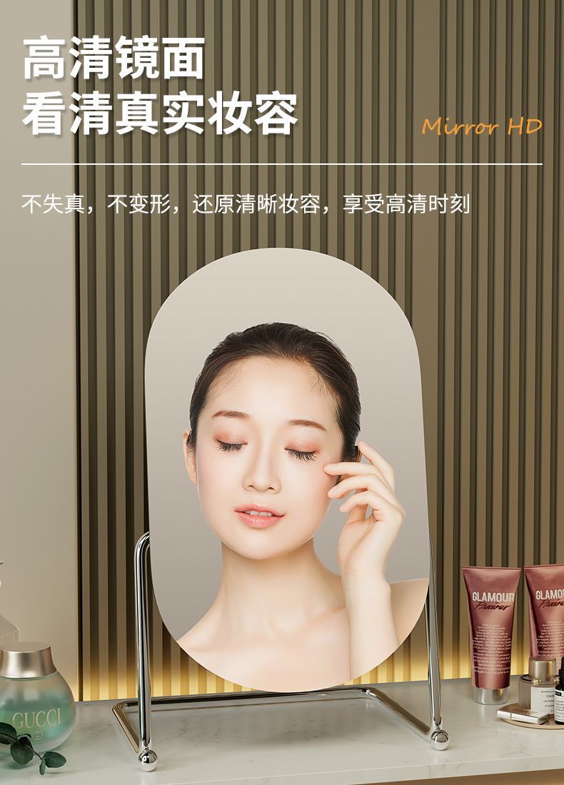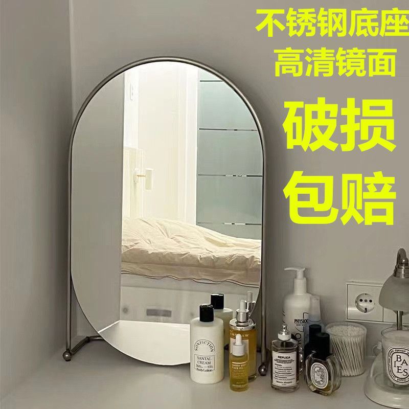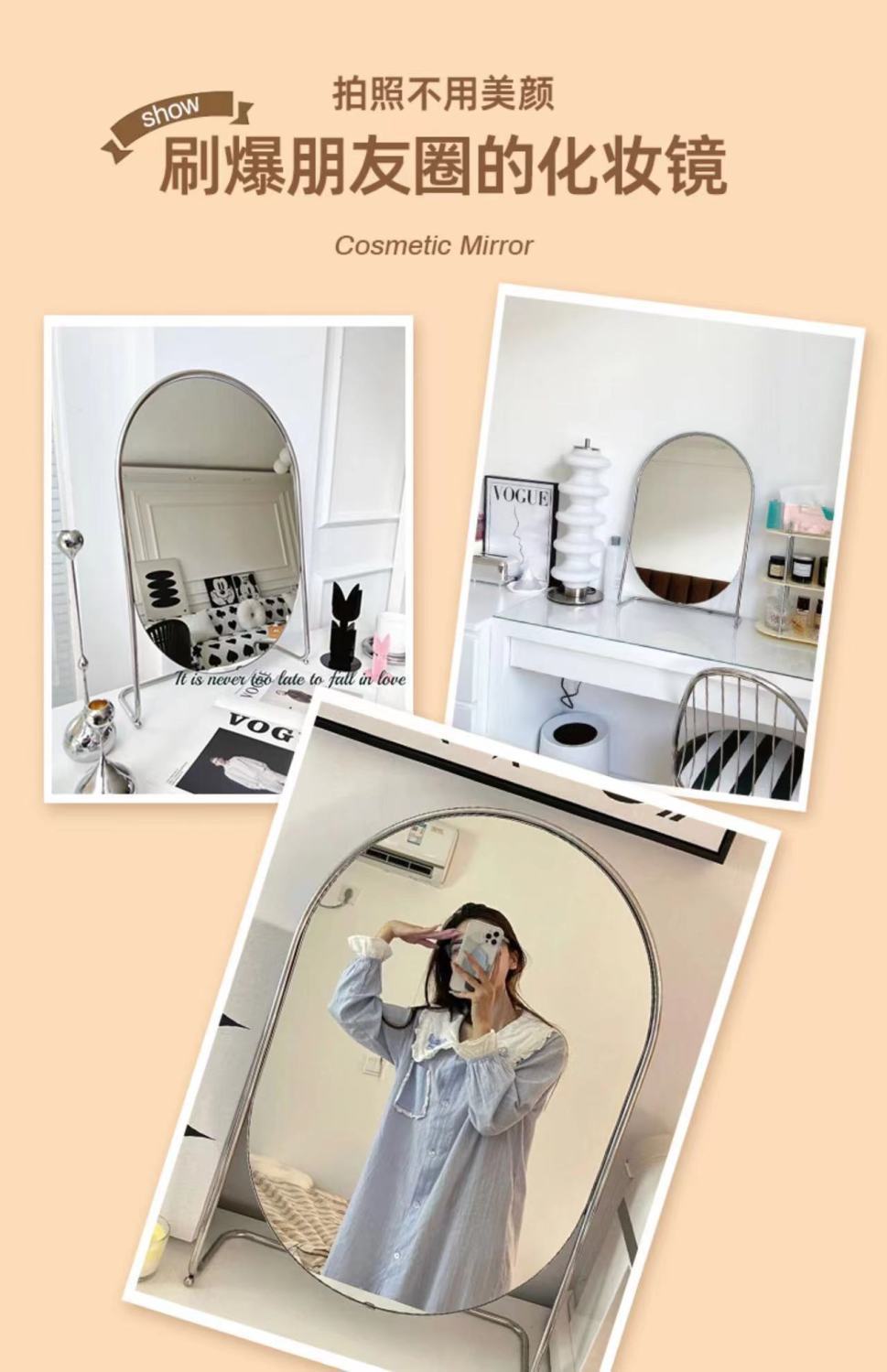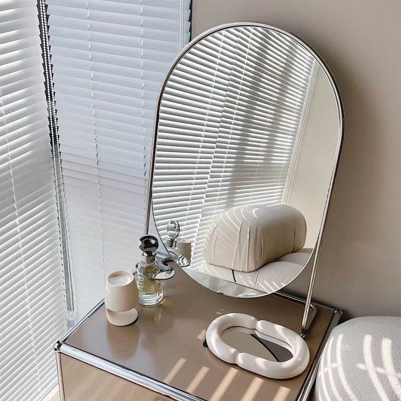 현대적인 간단한 스테인레스 스틸 금속 철 데스크탑 타원형 화장 거울 라이트 럭셔리 한국어 ins 블로거 거울 데스크탑