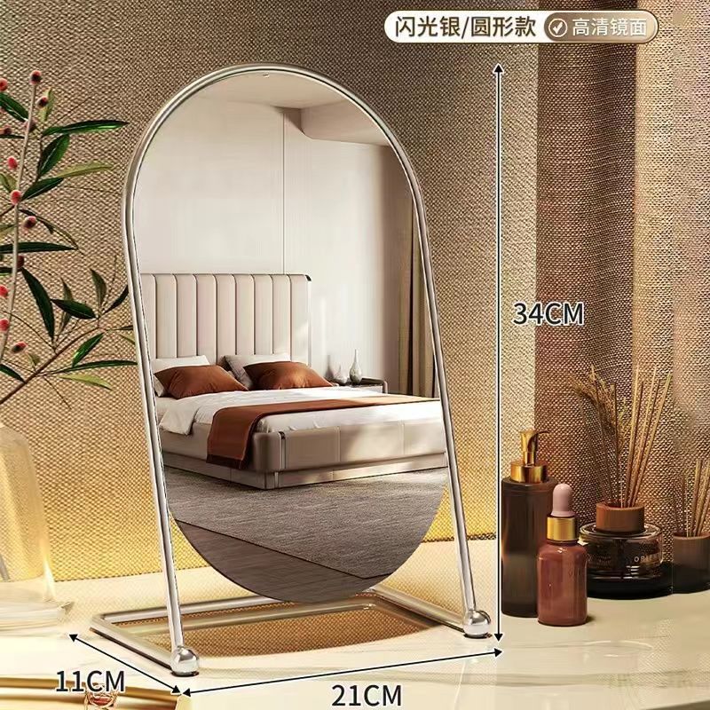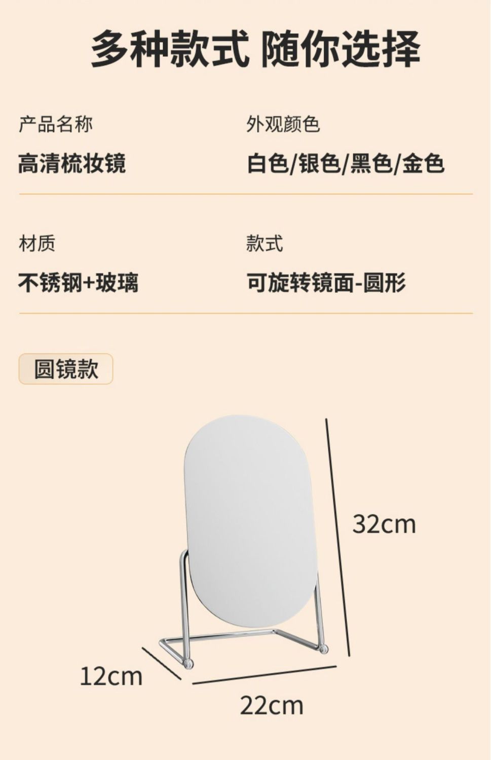 현대적인 간단한 스테인레스 스틸 금속 철 데스크탑 타원형 화장 거울 라이트 럭셔리 한국어 ins 블로거 거울 데스크탑스토어 가기