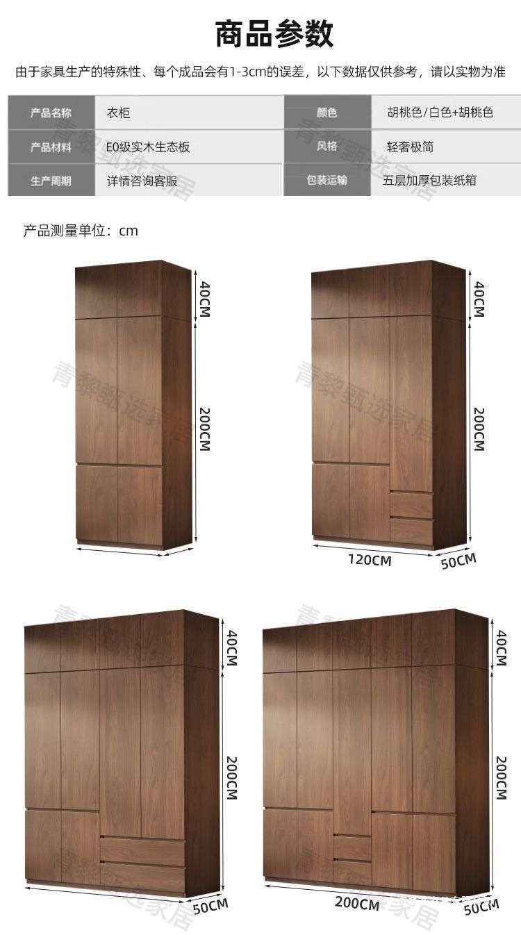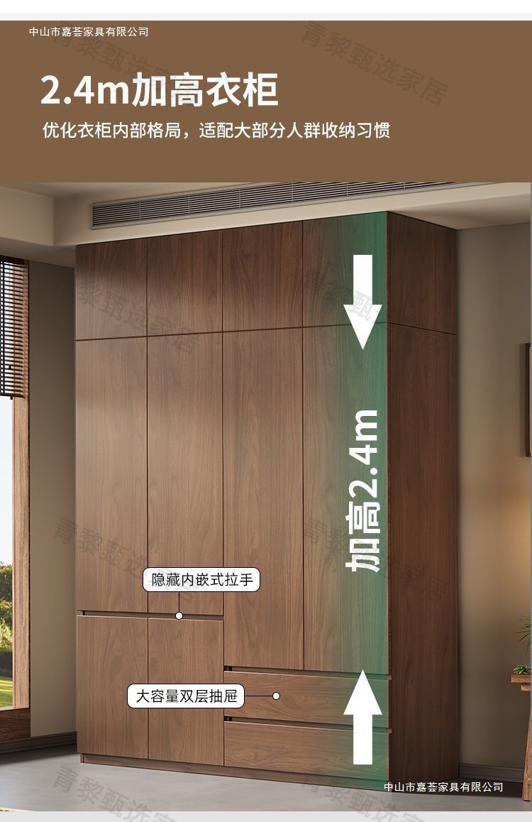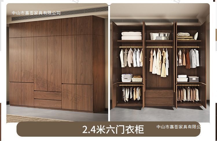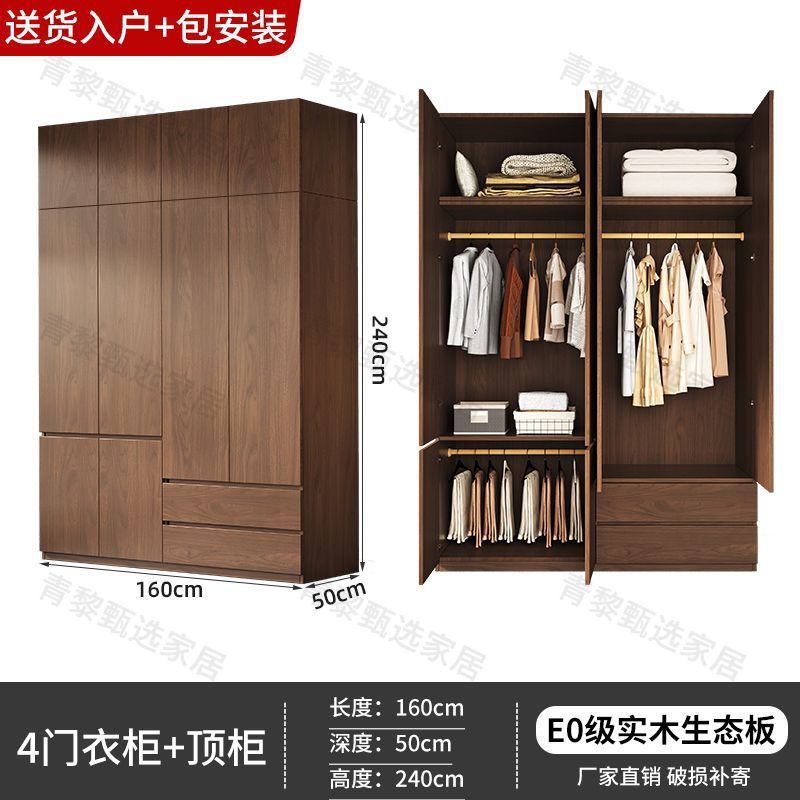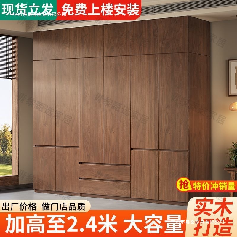 • 2.4m 옷장 + 상단 캐비닛 [높이 2.4m] 원목 호두 색상