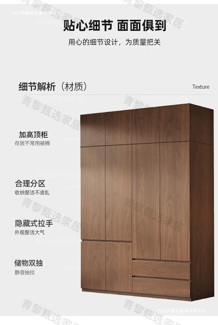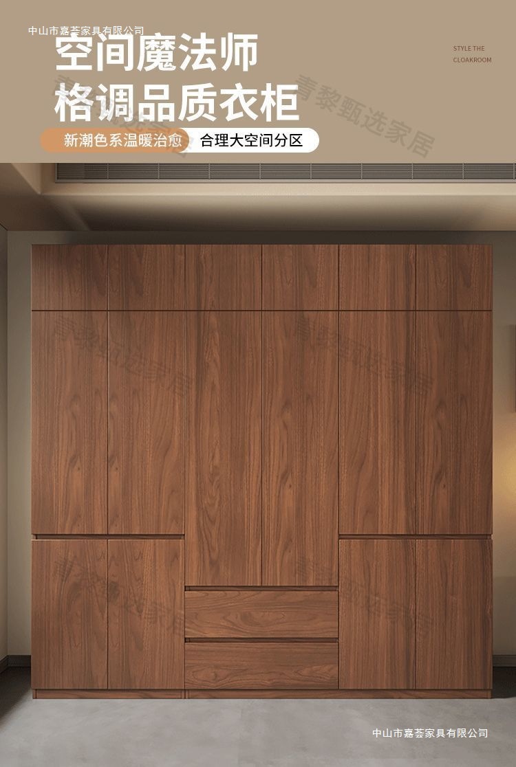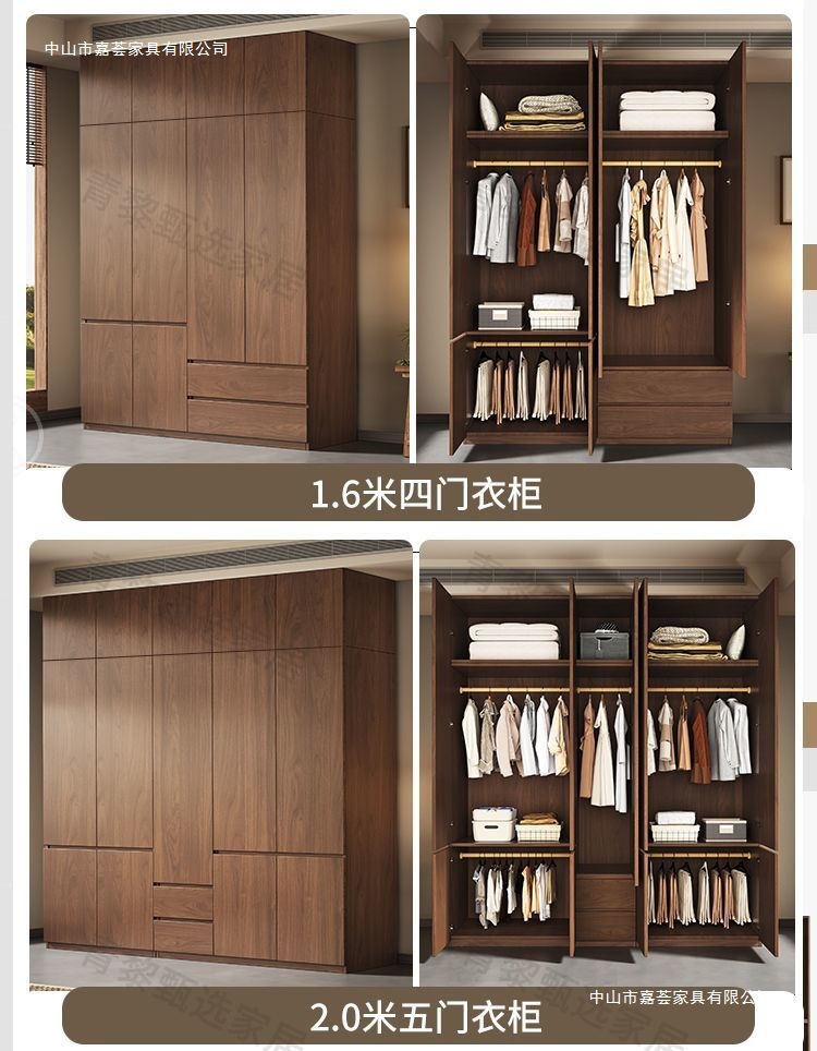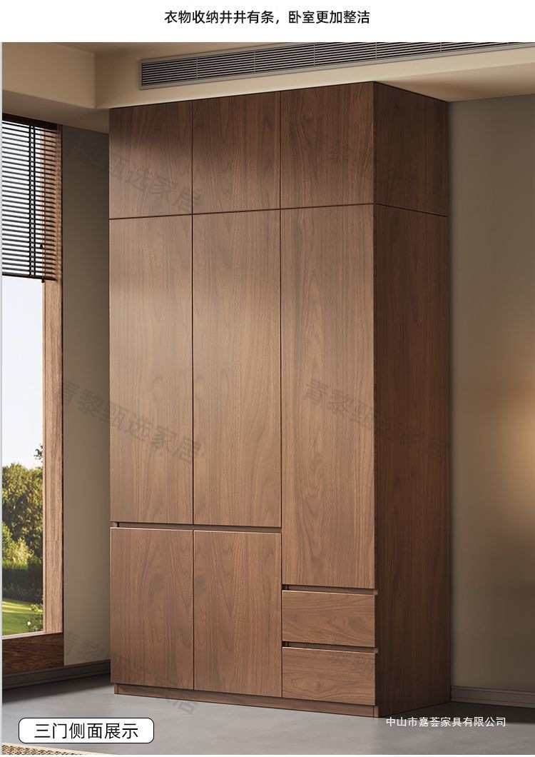 • 2.4m 옷장 + 상단 캐비닛 [높이 2.4m] 원목 호두 색상