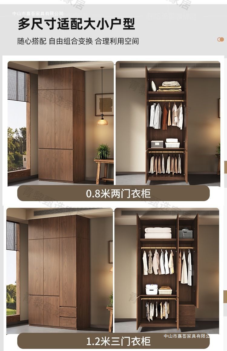 • 0.8m 옷장 + 상단 캐비닛 [ 2.4m 높이] 원목 호두 색상