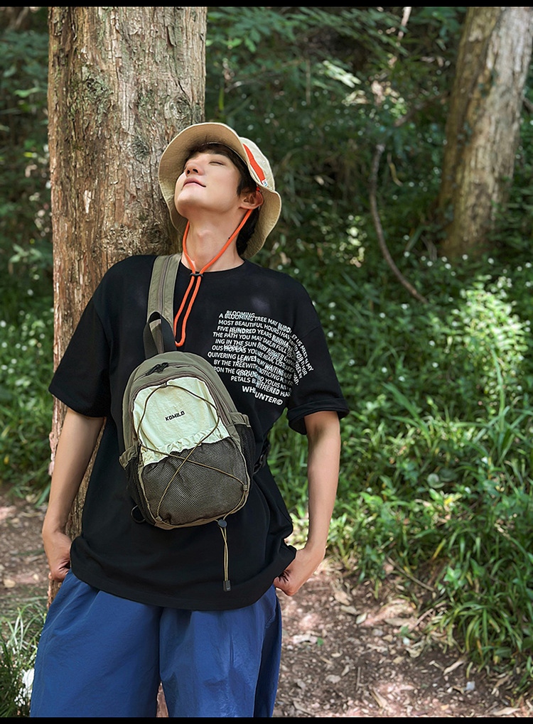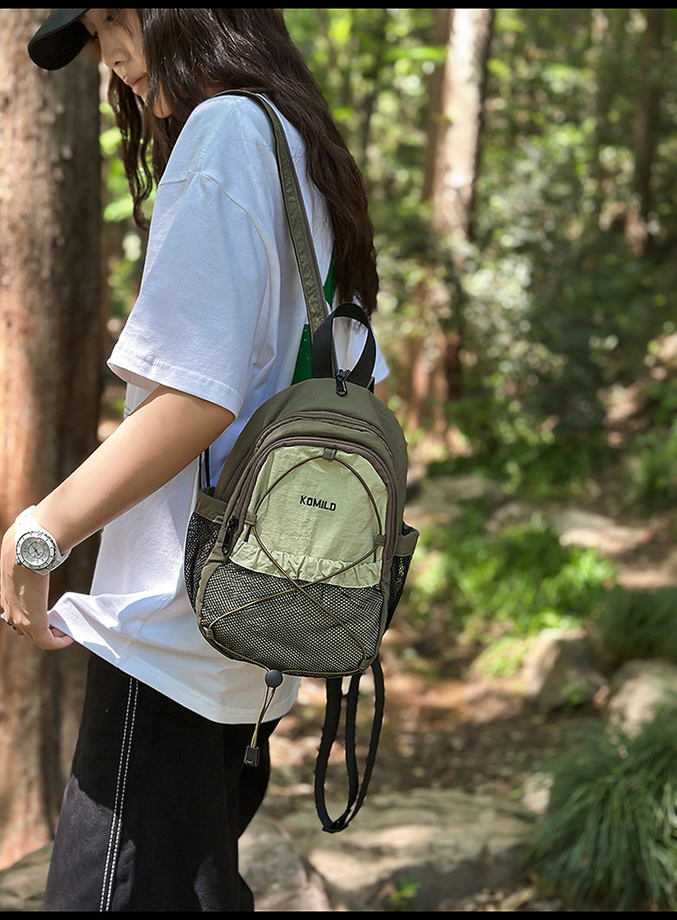 새로운 고급스러운 마운틴 스타일 인 드로스트링 대비 색상 배낭 커플 경량 여행 등산 대용량 배낭스토어 가기
