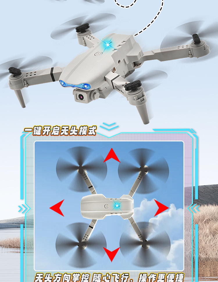 국경 간 E99 드론 항공 사진 단일 카메라 듀얼 카메라 HD 쿼드 콥터 어린이 장난감 접이식 원격 제어 항공기