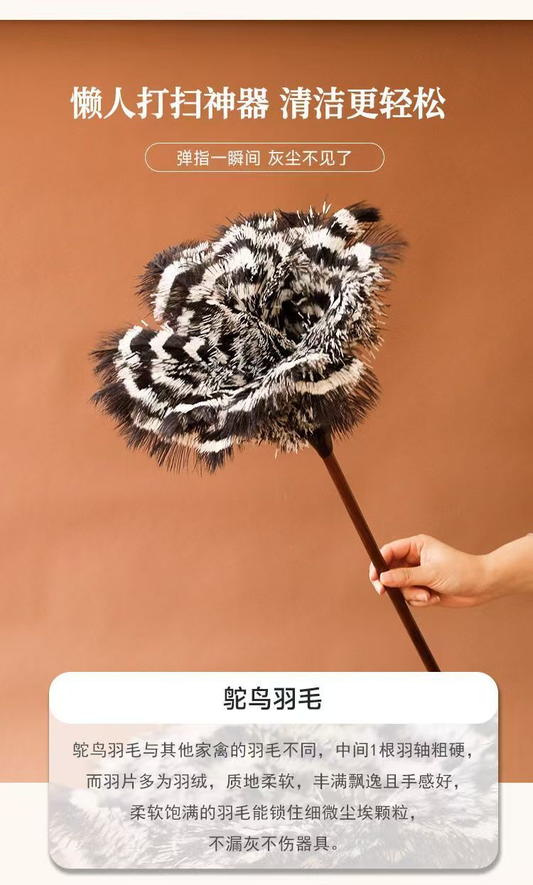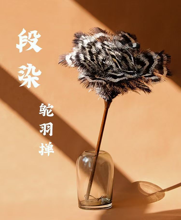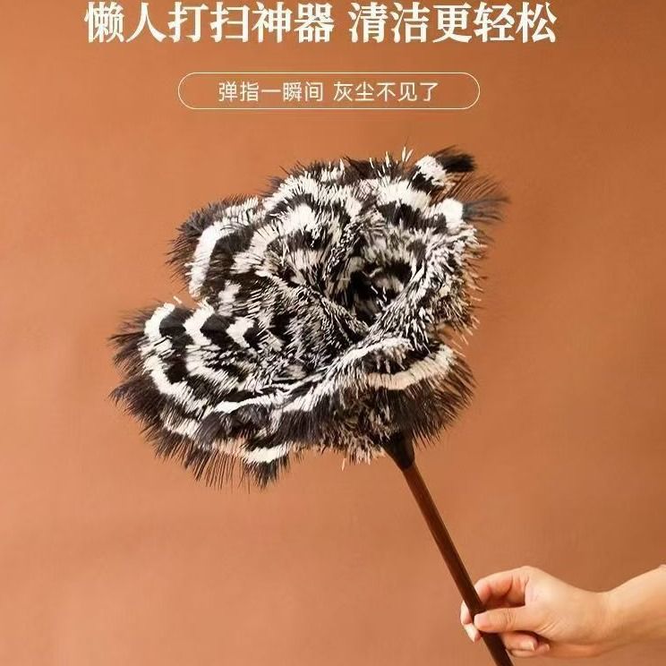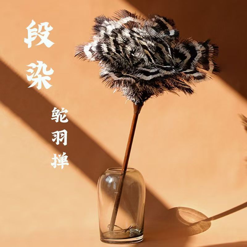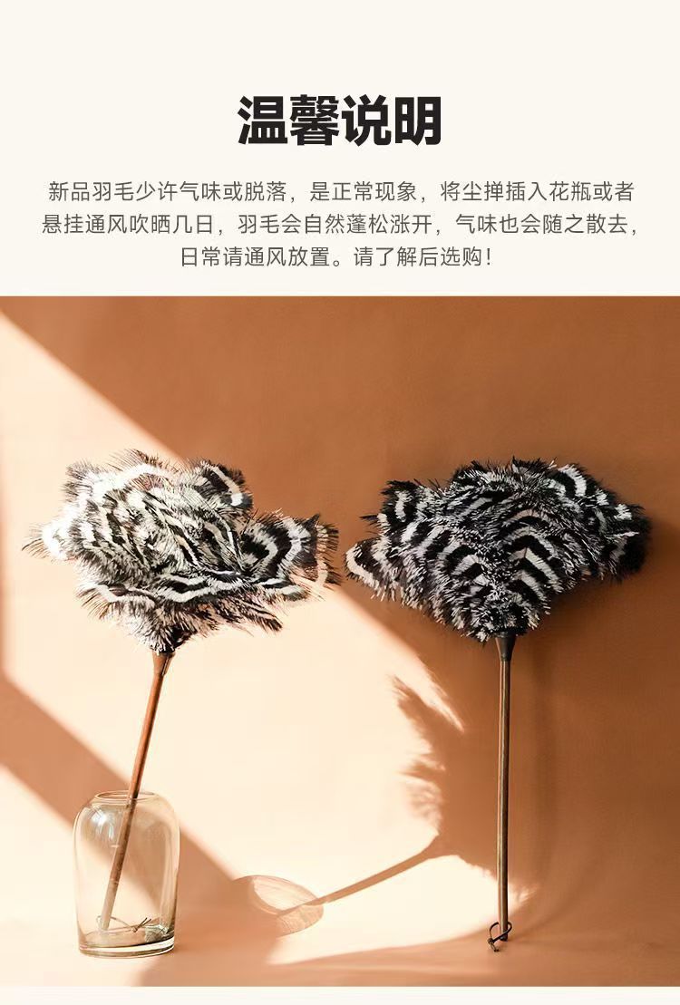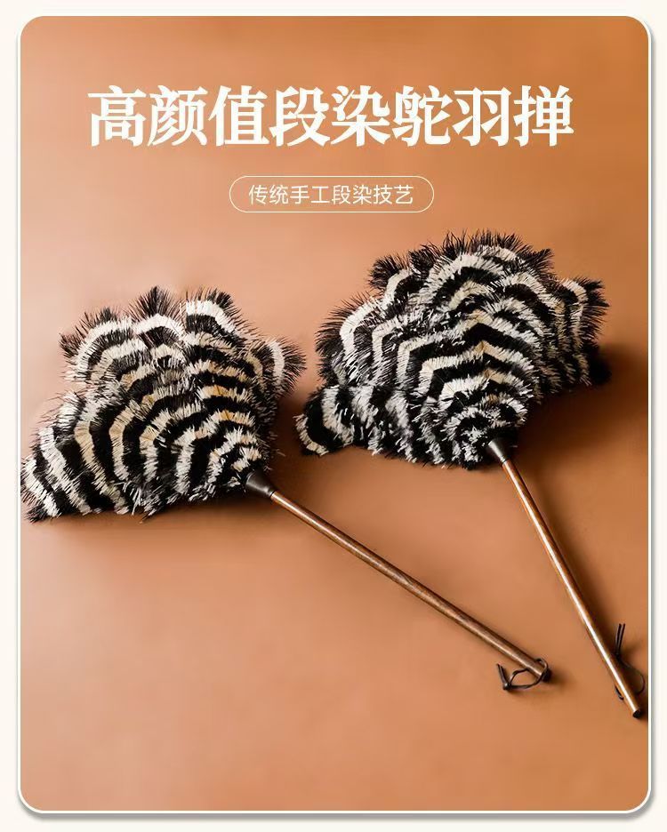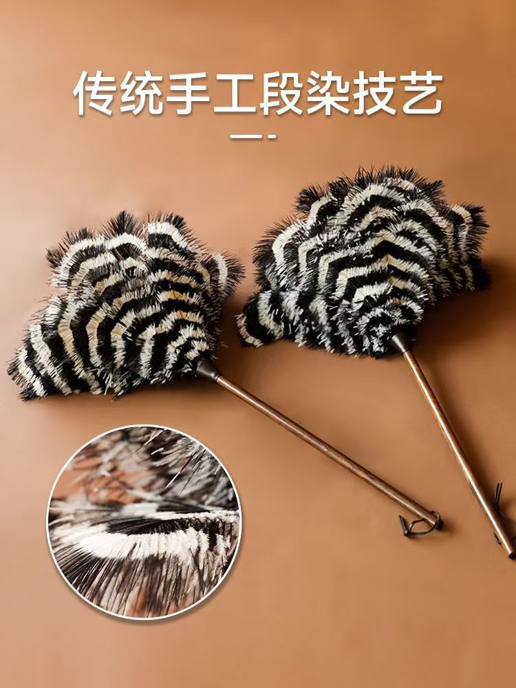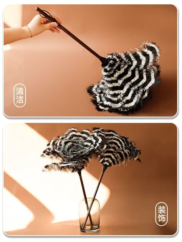 • [얼룩말 패턴 참] 호두나무 손잡이 타조 깃털 먼지떨이