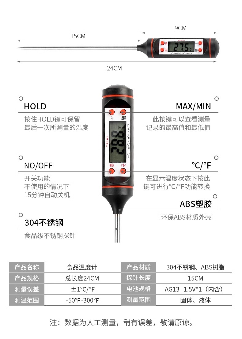 • ✪✩✩✩✪[플래그십 일반 모델] 프로브 15cm, 3초 온도 측정, 측정 범위 -50-300­°씨✪✩✪