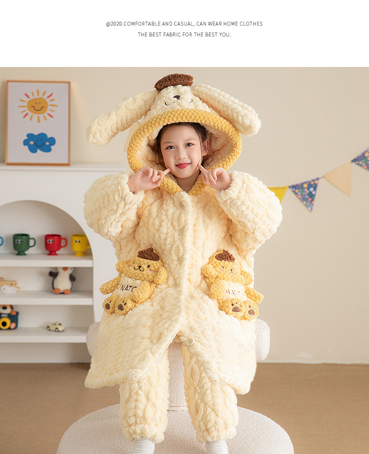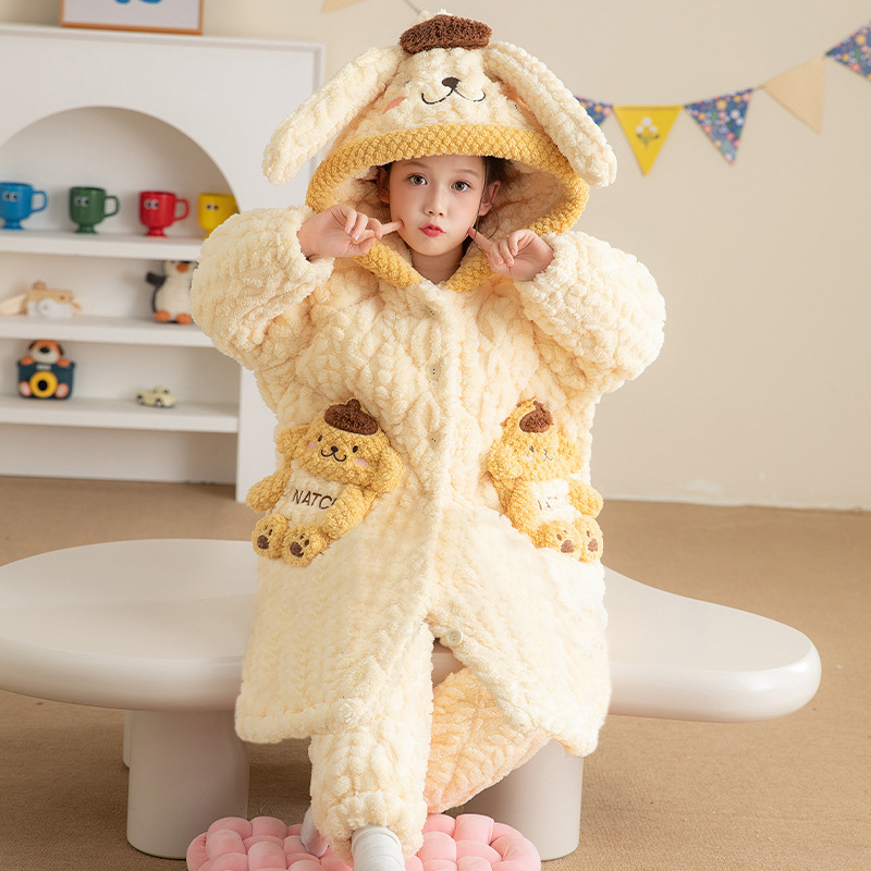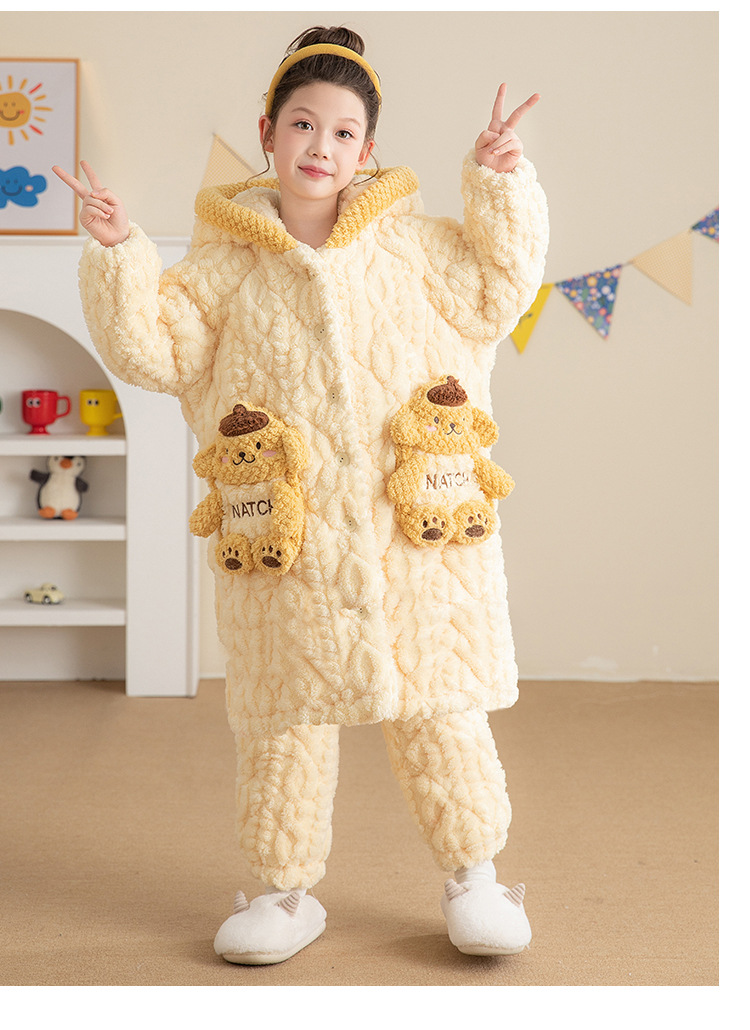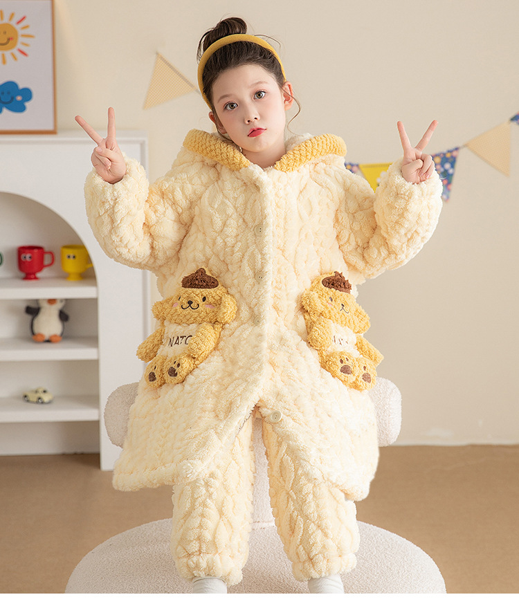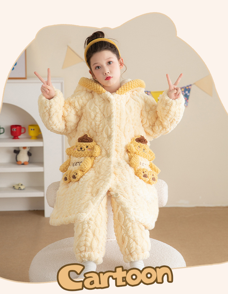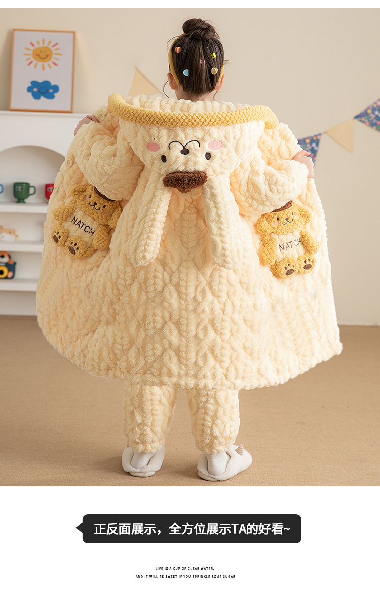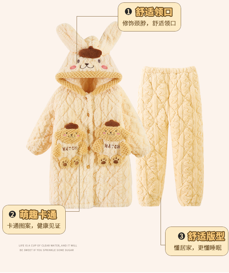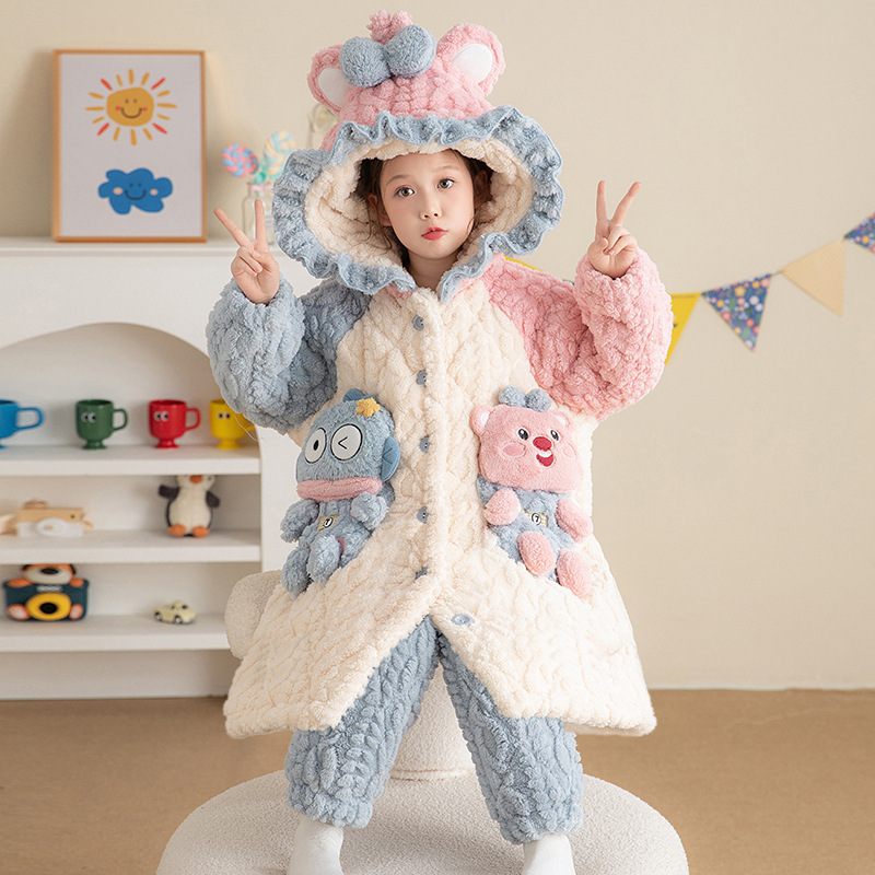 여아 잠옷 겨울 새로운 스타일 3겹 누비 이불 두꺼운 벨벳 따뜻한 큰 어린이 산호 벨벳 만화 달콤하고 귀여운