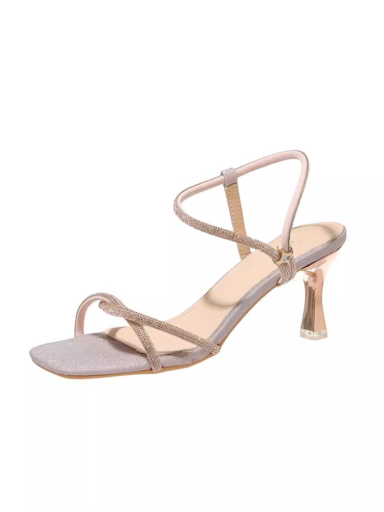 여성을위한 요정 스타일 원 라인 버클 하이힐 샌들 2025 여름 새로운 투명한 두꺼운 굽 패션 여성 샌들