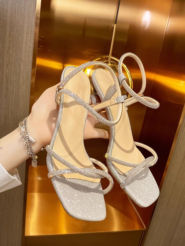 여성을위한 요정 스타일 원 라인 버클 하이힐 샌들 2025 여름 새로운 투명한 두꺼운 굽 패션 여성 샌들스토어 가기