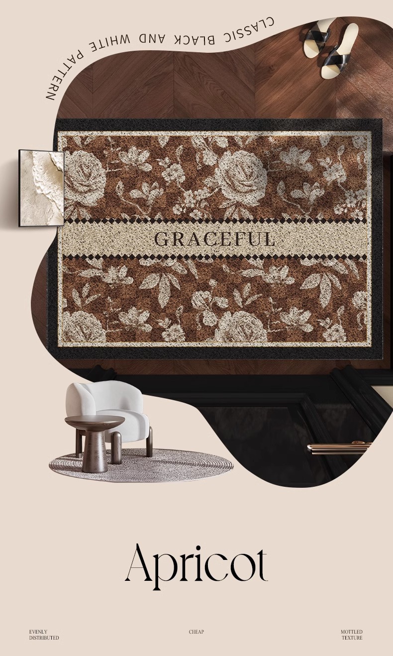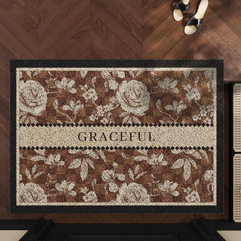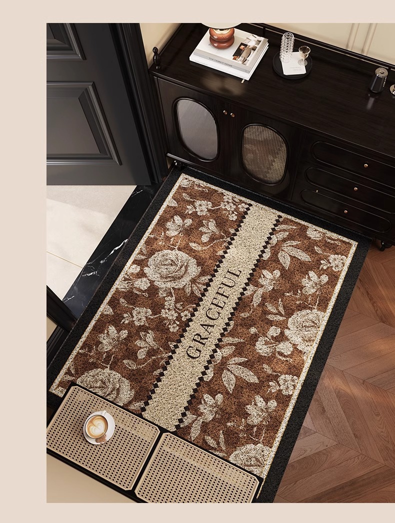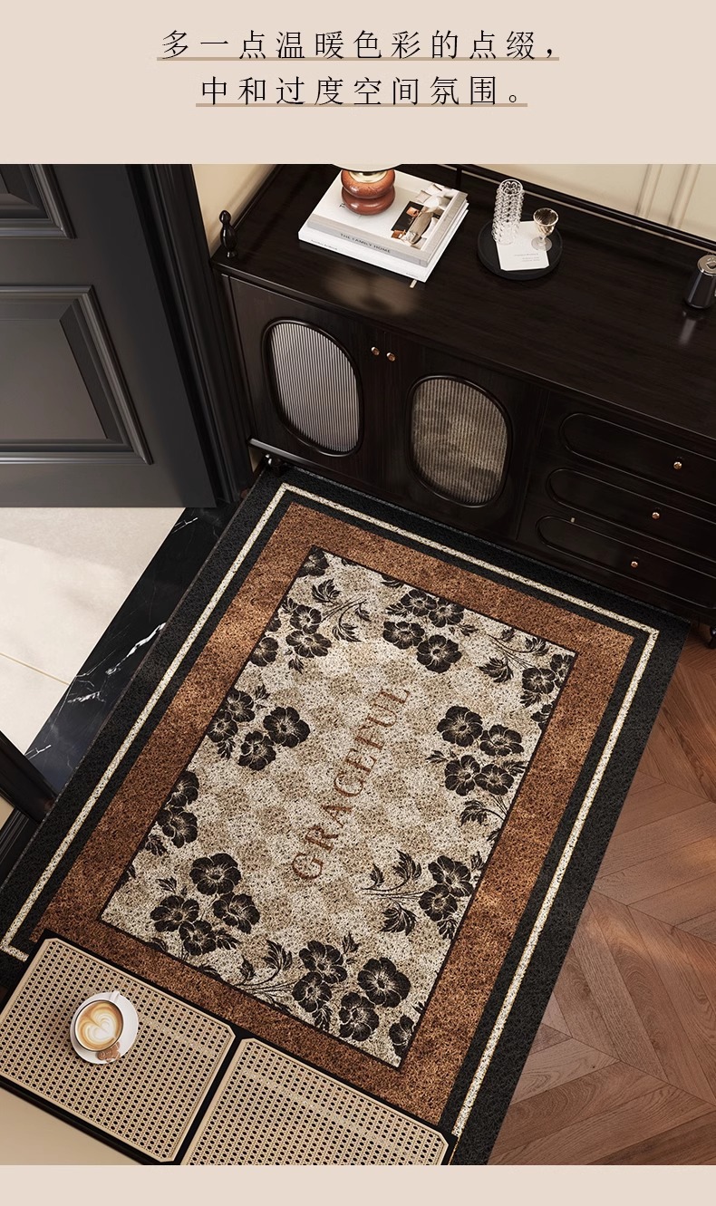 현관문 바닥매트, 중세풍 실크링 바닥매트, 집 현관문 얼룩 방지 및 미끄럼 방지 매트, 관리가 필요 없는 현관문 매트